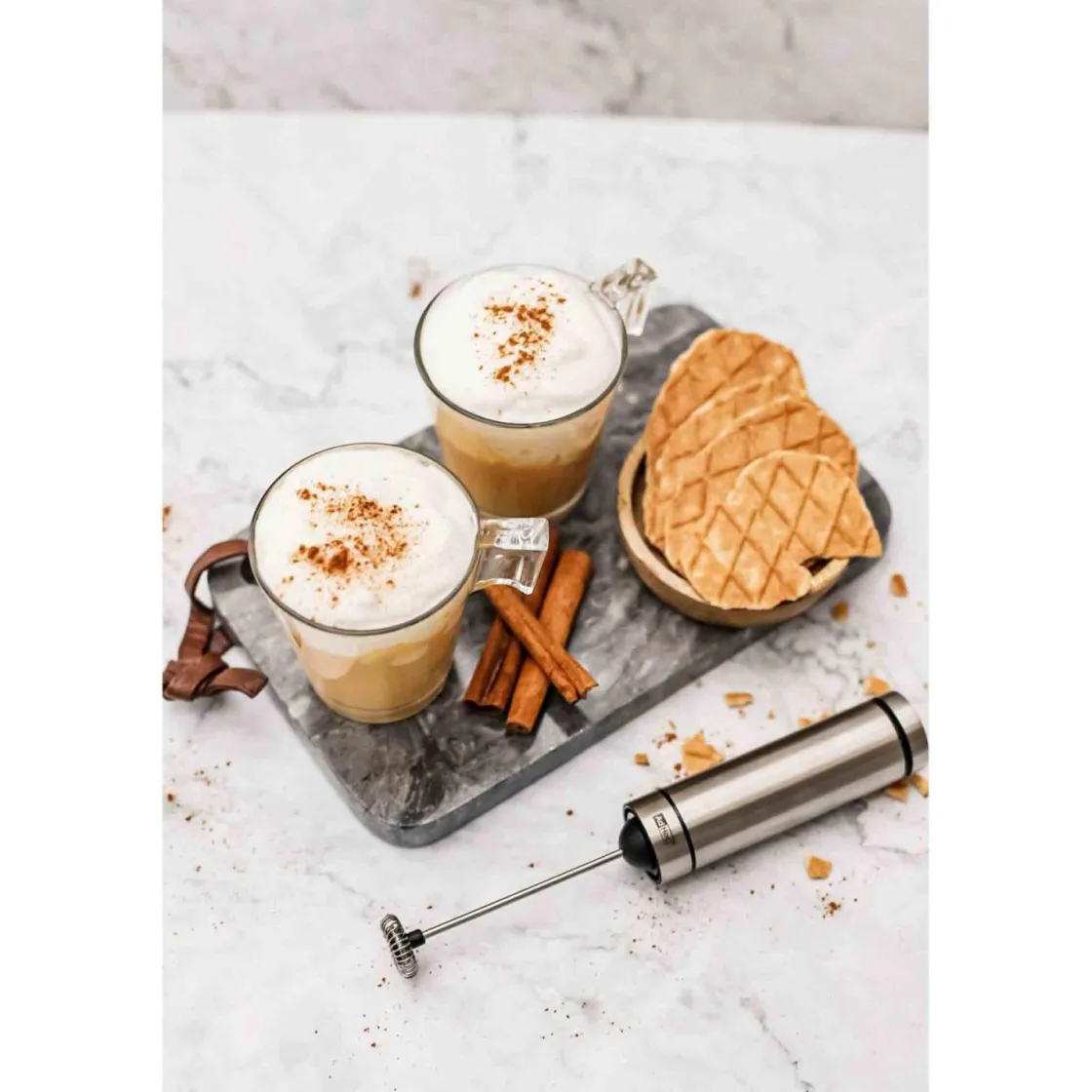 En batteridrevet melkeskummer som lager deilig skum til kaffen din. Perfekt for cappuccino og latte, enkel i bruk med ett knappetrykk. Kompakt og lett design, ideell for både hjemmebruk og på farten.