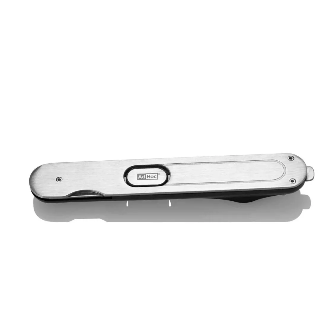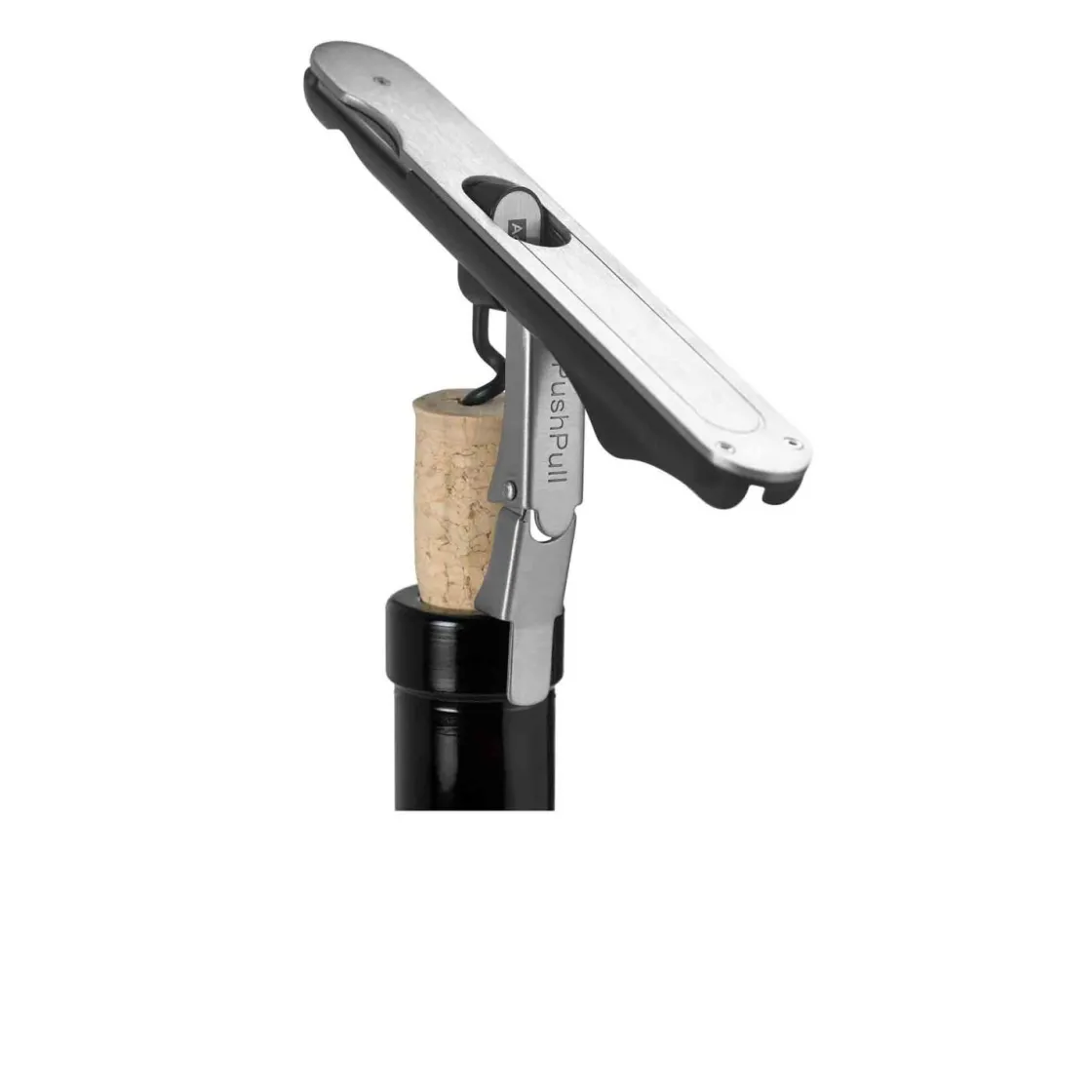 Vinopptrekker i rustfritt stål fra AdHoc med ergonomisk utforming for enkel og effektiv åpning av vinflasker med minimal anstrengelse. Den fungerer på både plastkorker og naturkorker og har en integrert foliekutter.