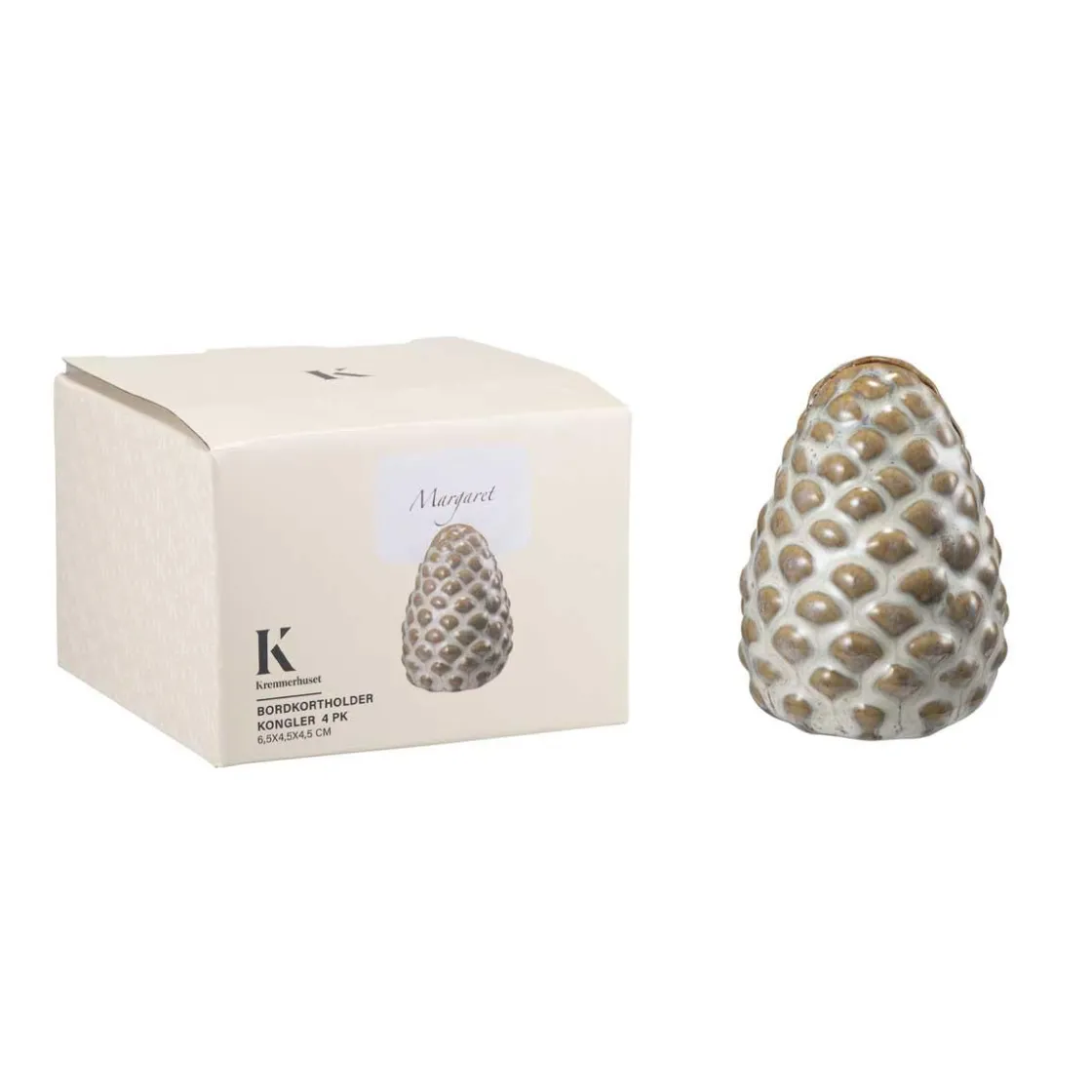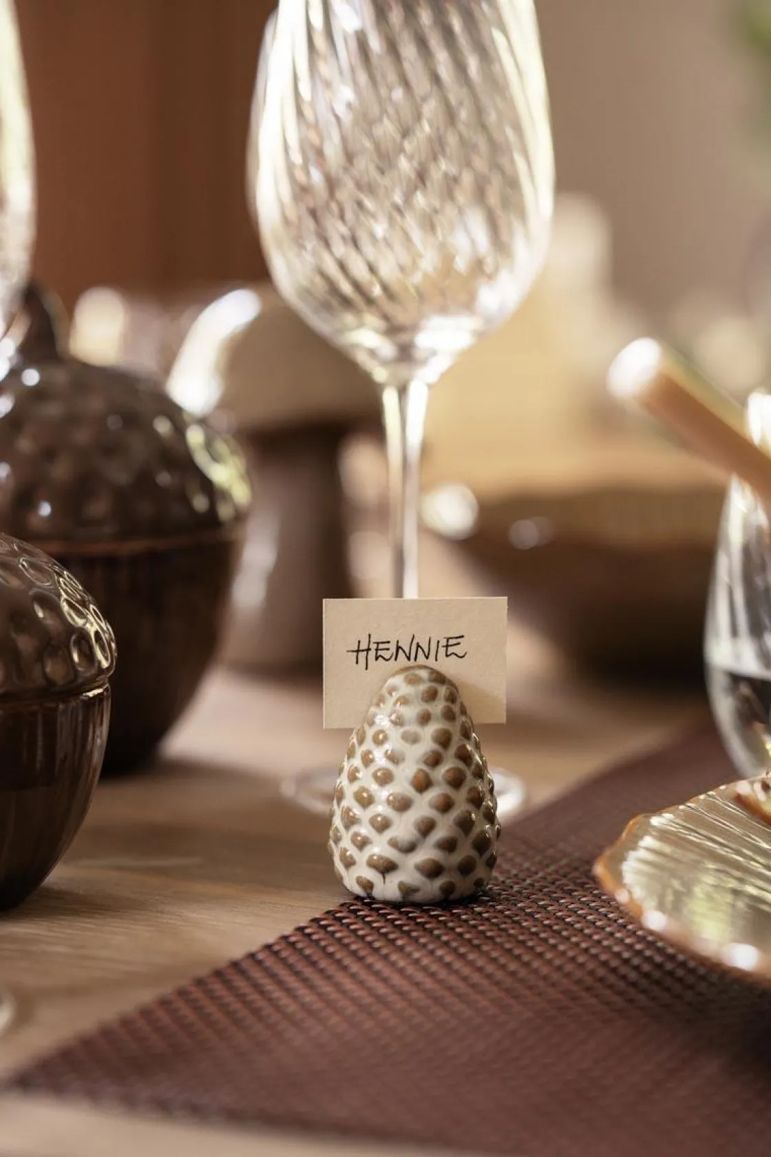 Små kongler til bordet gjør det enkelt å gi gjestene en personlig plass. Disse bordkortholderne kommer i sett på fire og passer fint til både høst og jul. Kombiner gjerne med , og levende for en varm og innbydende borddekking.