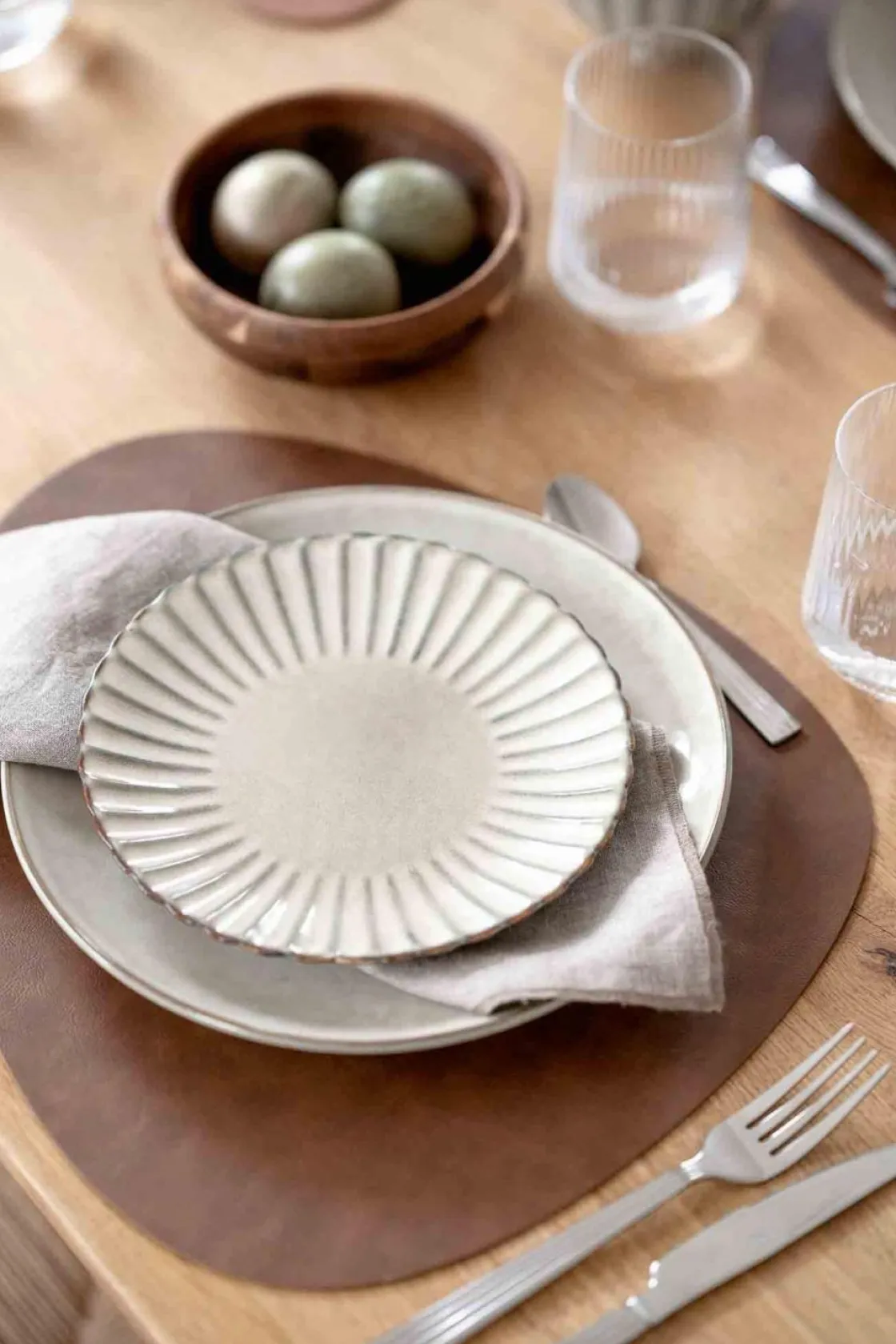 Stilig spisebrikke eller dekkebrikke i en gøyal form, supre når borddekkingen trenger den siste prikken over i’en. Brikken er laget i imitert skinn og finnes også i .