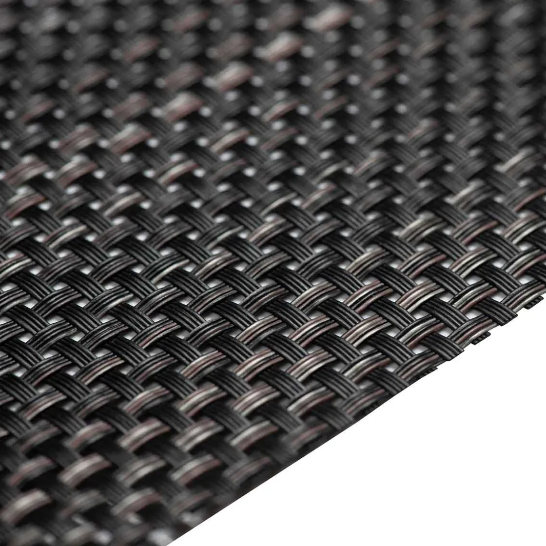 Mørk dekkebrikke med vevd struktur som gir bordet et ryddig uttrykk og beskytter underlaget mot søl og riper. Enkel å tørke av og passer like fint til hverdag som til helgekos.