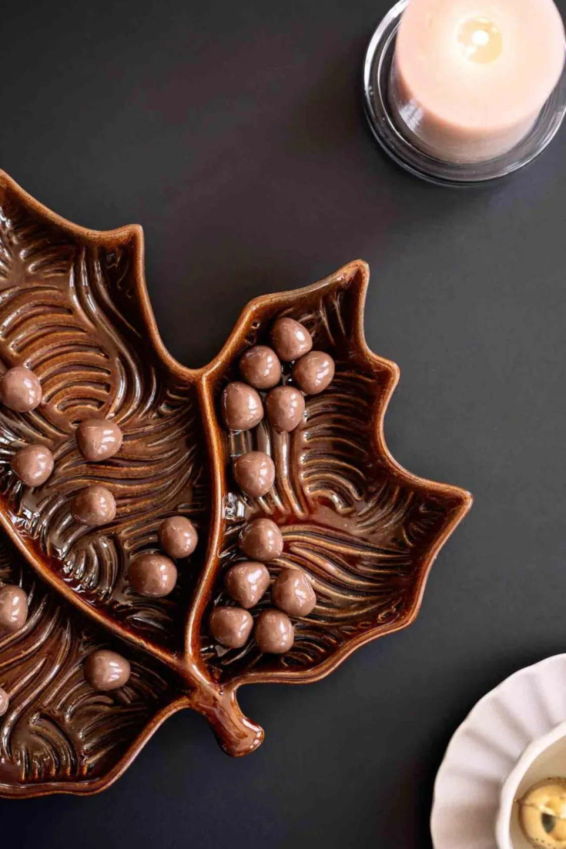 Oppdag sjarmen i naturen med vårt dekorative fat formet som et lønneblad i stentøy. Med sin detaljerte og realistiske utforming, legger dette dekorfatet en unik og elegant touch til ethvert rom, enten det er på stuebordet, i entreen eller som et blikkfang på spisebordet.