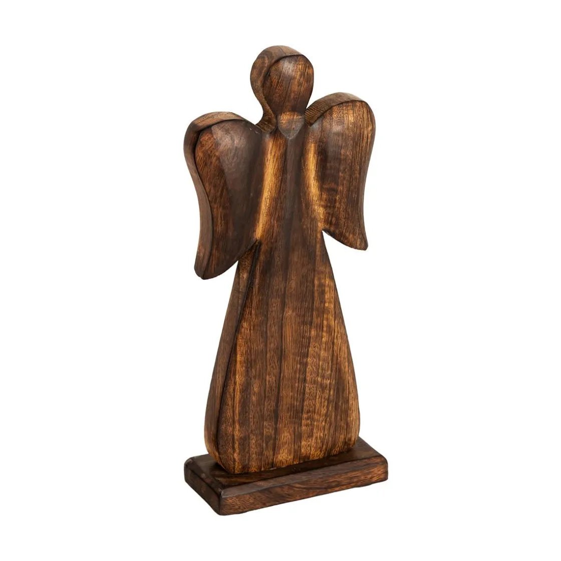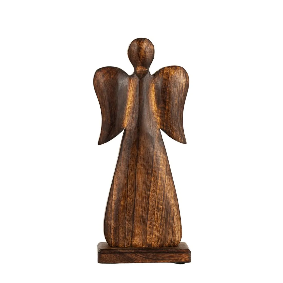 Denne vakre engelen i mangotre sprer en lun og fredfull stemning i hjemmet. Med sitt tidløse uttrykk passer den like fint på peishylla som på bordet. Utforsk også vårt for flere dekorative figurer som skaper stemning i høytiden. Kommer også i en