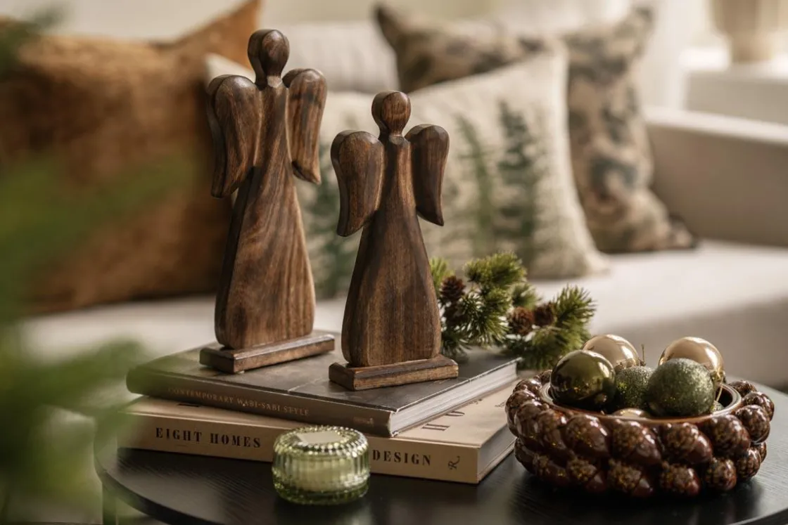Denne stilrene engelen i tre tilfører et harmonisk og lunt preg til hjemmet. Med sin tidløse utforming passer den perfekt både som pynt i julen og som en dekorativ detalj året rundt. Finnes også i en , slik at du kan kombinere for å få et helhetlig uttrykk.