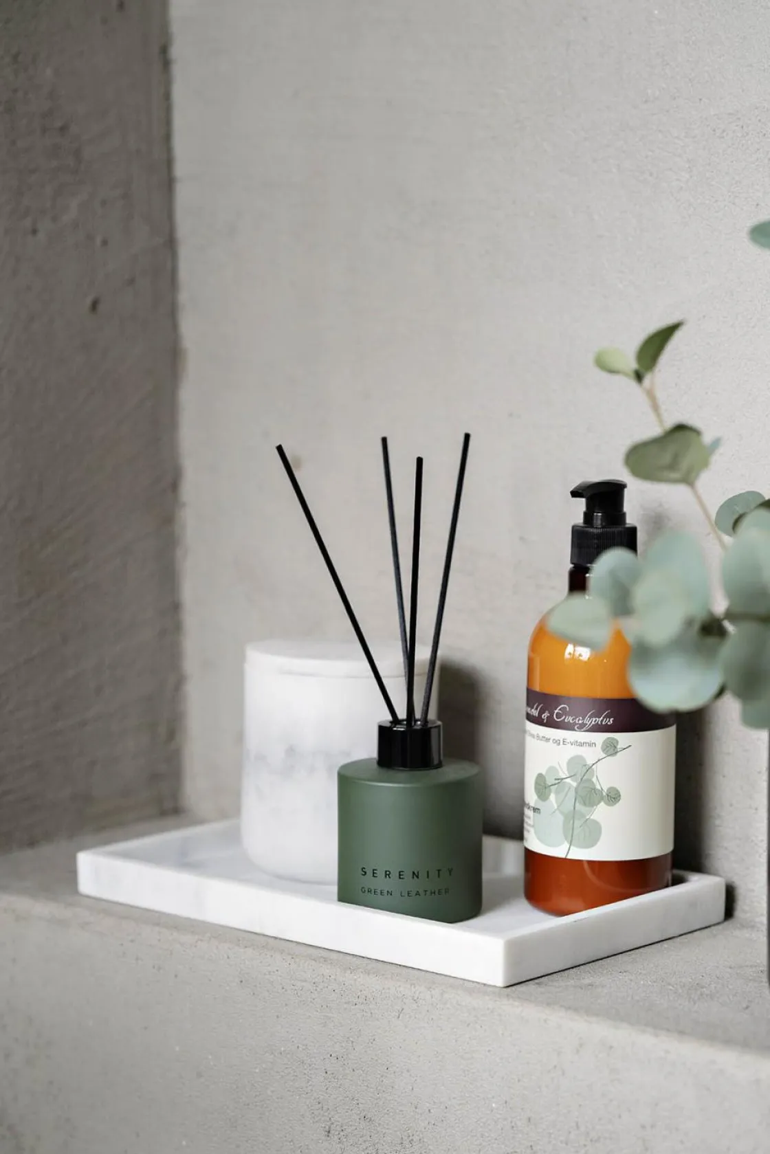 Fat i lekkert og eksklusivt marmormønster. Samle enkelt ulike elementer for å skape et lite miljø. Perfekt til å sette såpepumpen eller romduften på.