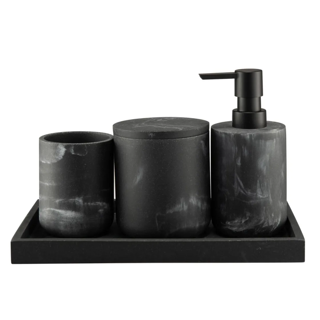 Fat i sort marmorfinish, perfekt til å for eksempel ha duftlys eller romduft på! Fresh opp badet med vår stilige baderomsserie i marmorfinish, nå også i en herlig