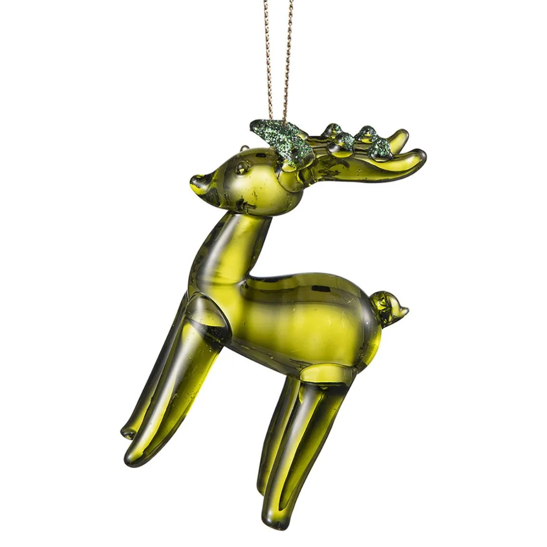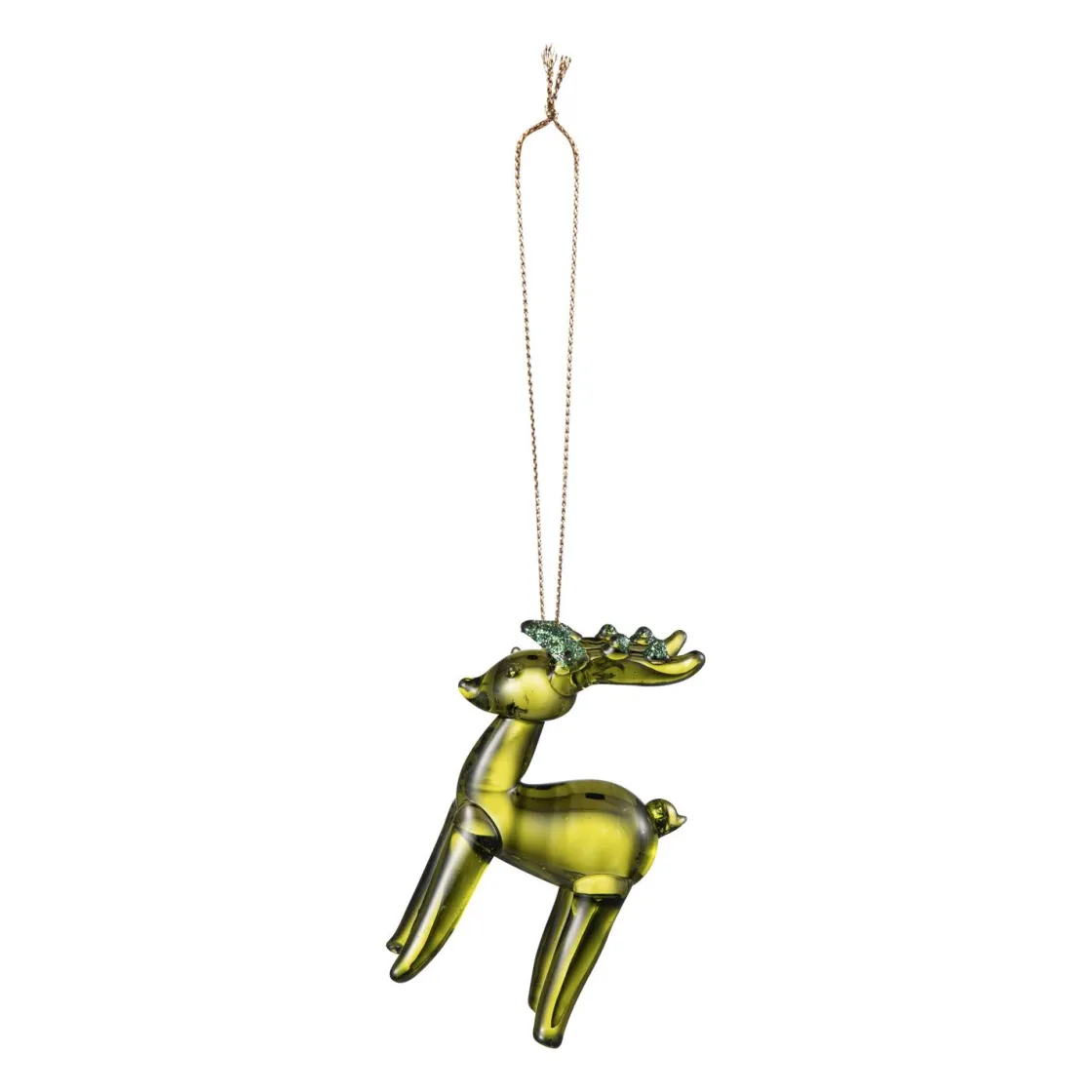 Denne hengende dåhjorten i grønt glass er et nydelig tilskudd til og annen i tradisjonelle farger. Små detaljer med naturlig preg er en enkel måte å gjøre et hvert rom mer trendy, også juletreet.