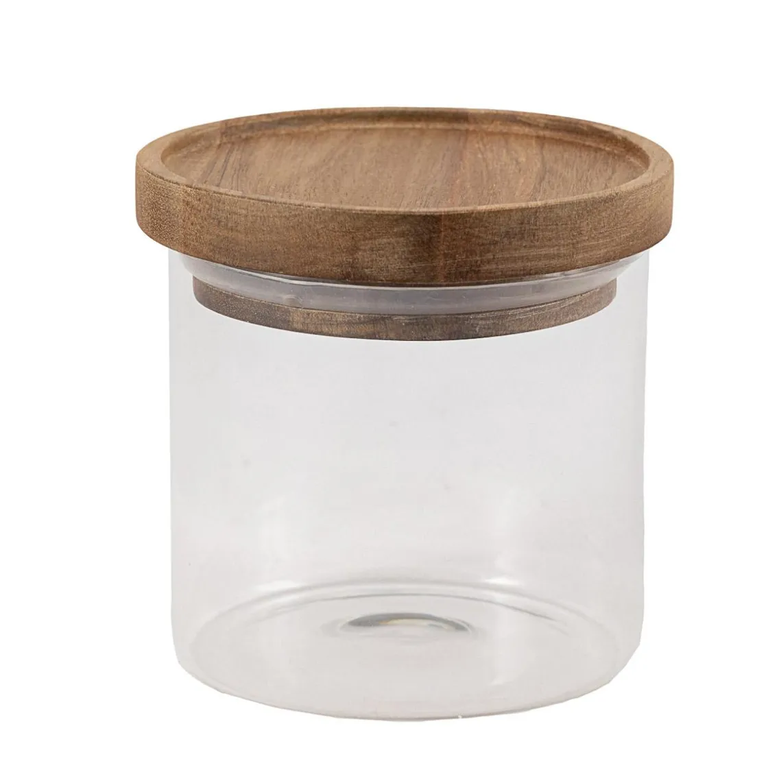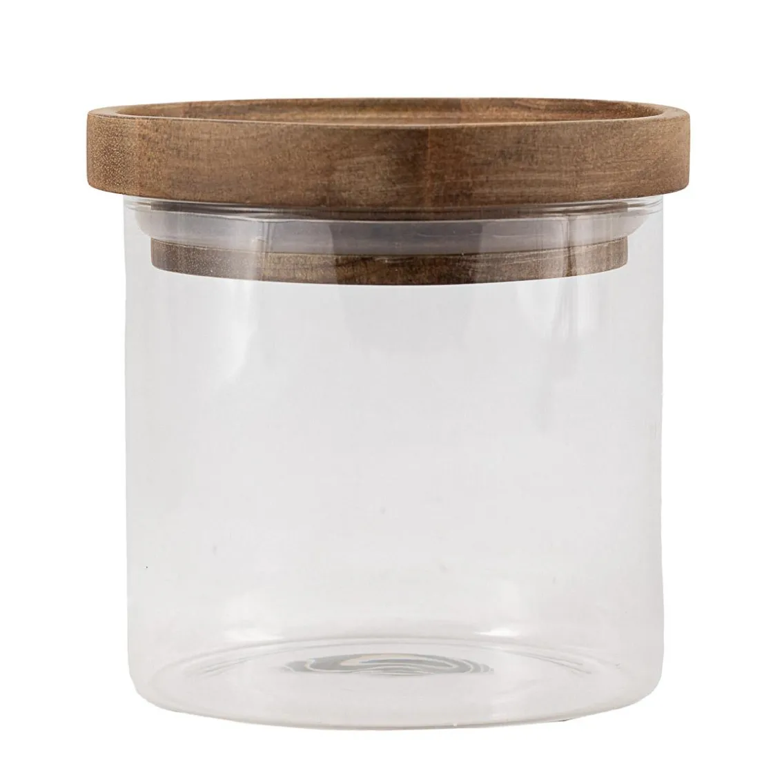 Praktisk og fin oppbevaringskrukke i glass og akasietre. Perfekt til oppbevaring av tørrvarer og lignende. Plasser sammen med for et komplett uttrykk.