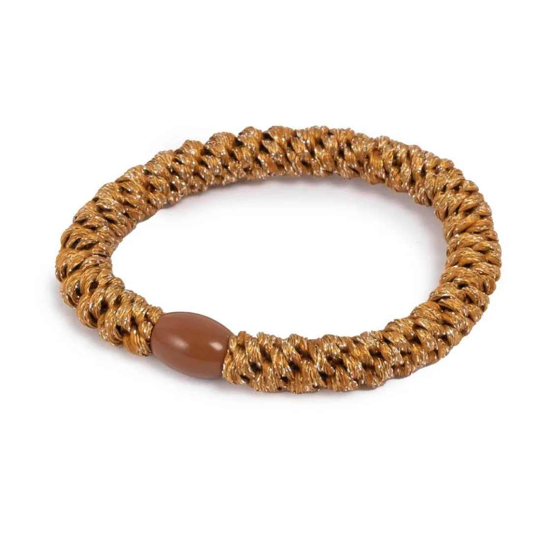 Lekker hårstrikk i nydelig gullfarger med glitter som piffer opp antrekket.