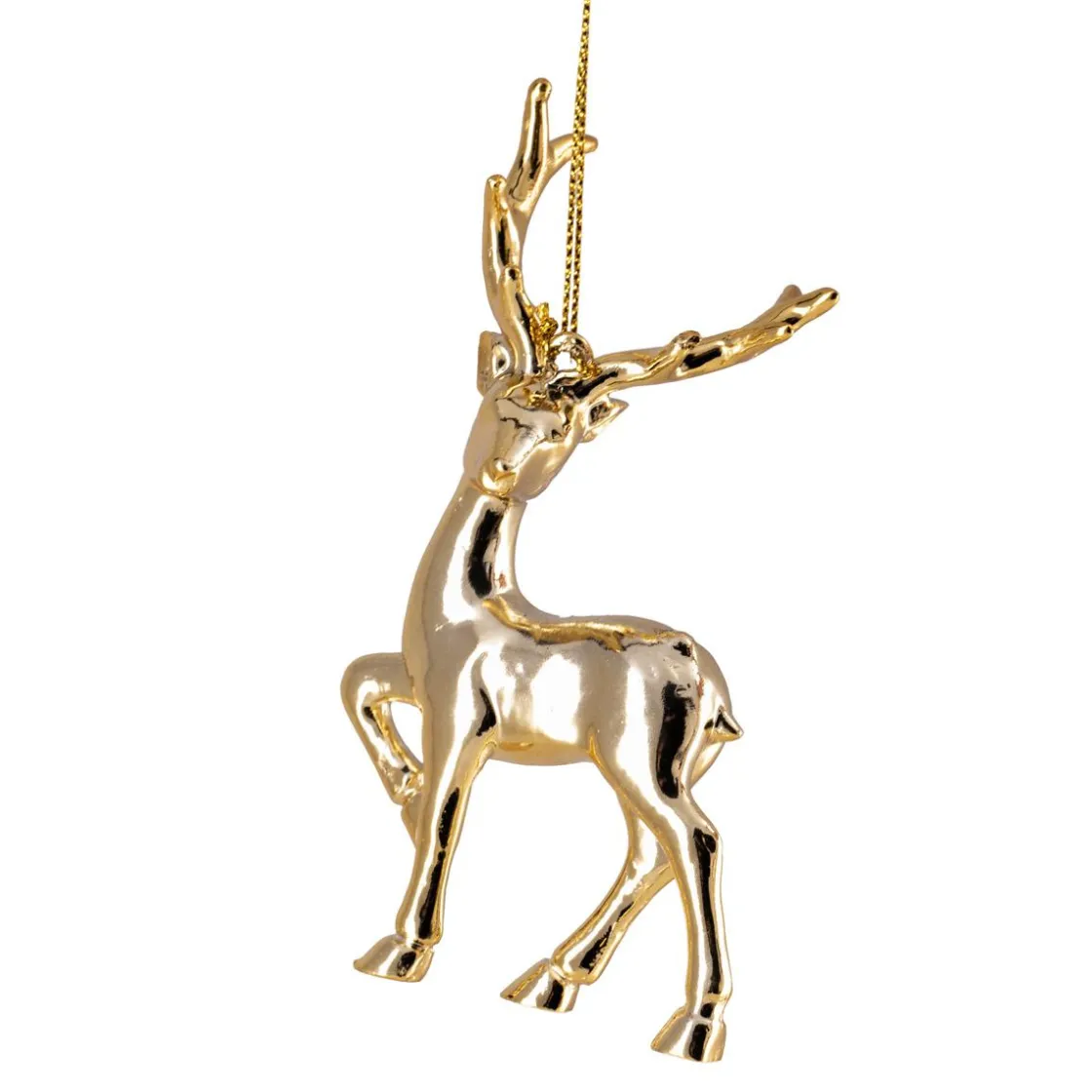 Denne hengende hjorten i gull er et nydelig tilskudd til og annen i tradisjonelle farger. Små detaljer med slik som denne er en enkel måte å gjøre juletreet mer trendy og i tiden.