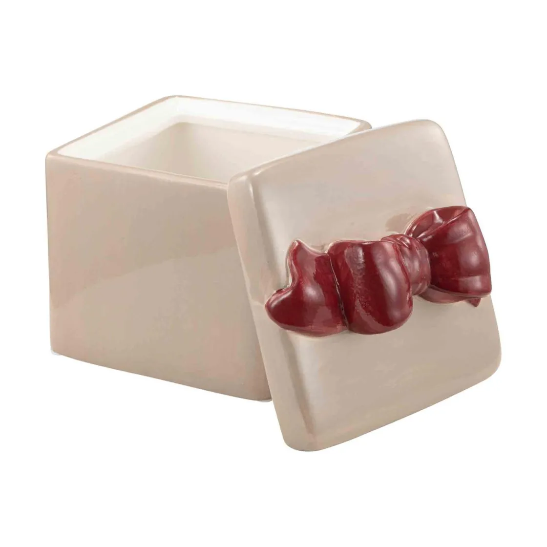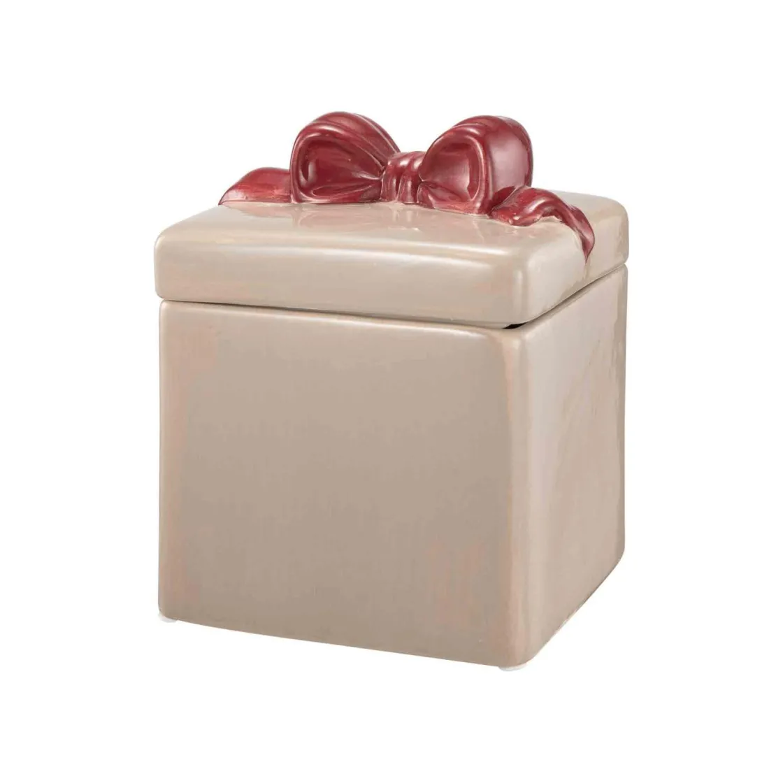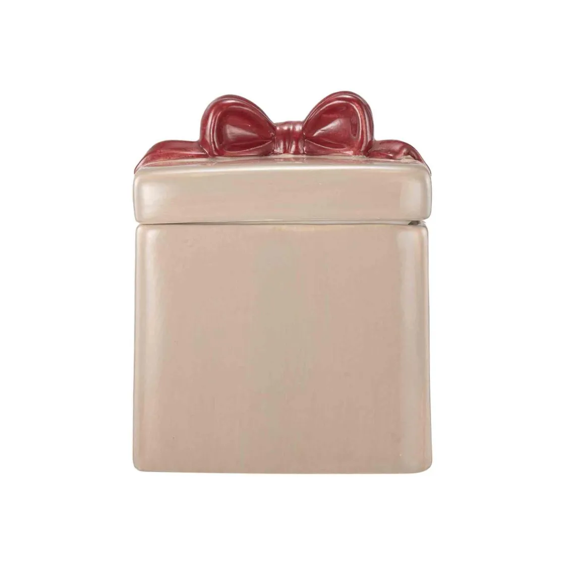 Legg til en touch av festlighet med vår julekrukke formet som en gavepakke med sløyfe på toppen. Denne sjarmerende krukken i en delikat beige farge er både funksjonell og dekorativ, perfekt for å oppbevare små skatter eller søtsaker i julen.