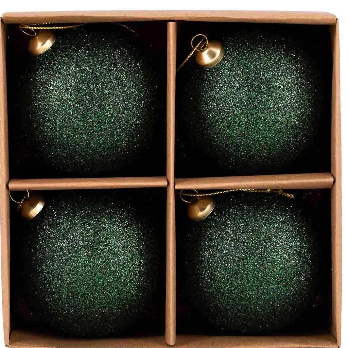 Lekre julekuler i med fire stykk i pakken. Laget av plast og dekorert med glitter. Veldig flotte på juletreet, og kombiner de gjerne med julekuler i rødt eller gull.