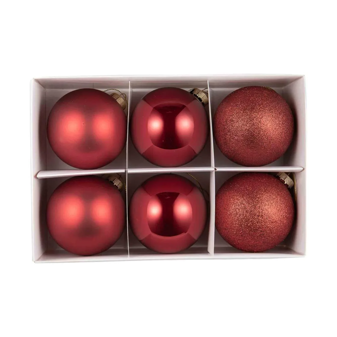 Legg til en klassisk touch med vår Julekule i rød fra 6-pack mix! Denne vakre julekulen tilfører varme og tradisjonell julestemning til din dekorasjon. Ved å kjøpe denne pakken, har vi allerede matchet kuler som perfekt komplementerer hverandre.