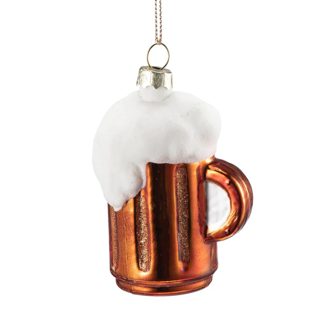 Juletrepynt formet som et ølkrus med skum på toppen – en leken detalj som garantert skaper smil i julestua. Perfekt for ølentusiasten eller som en morsom kontrast til den klassiske julepynten. Kombiner med flere fra vårt sortiment for et personlig og minneverdig juletre.