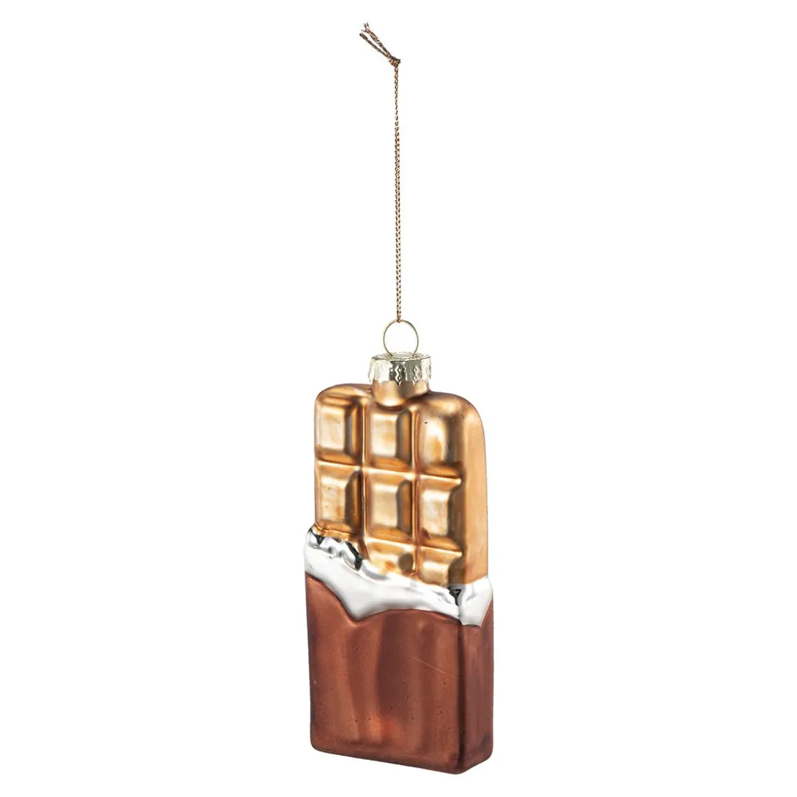 Et søtt innslag på juletreet! Denne julekulen formet som en sjokoladeplate gir en leken og fristende detalj til julepynten. Perfekt alene, eller sammen med våre andre dekorative og uvanlige for en personlig og morsom julelook.