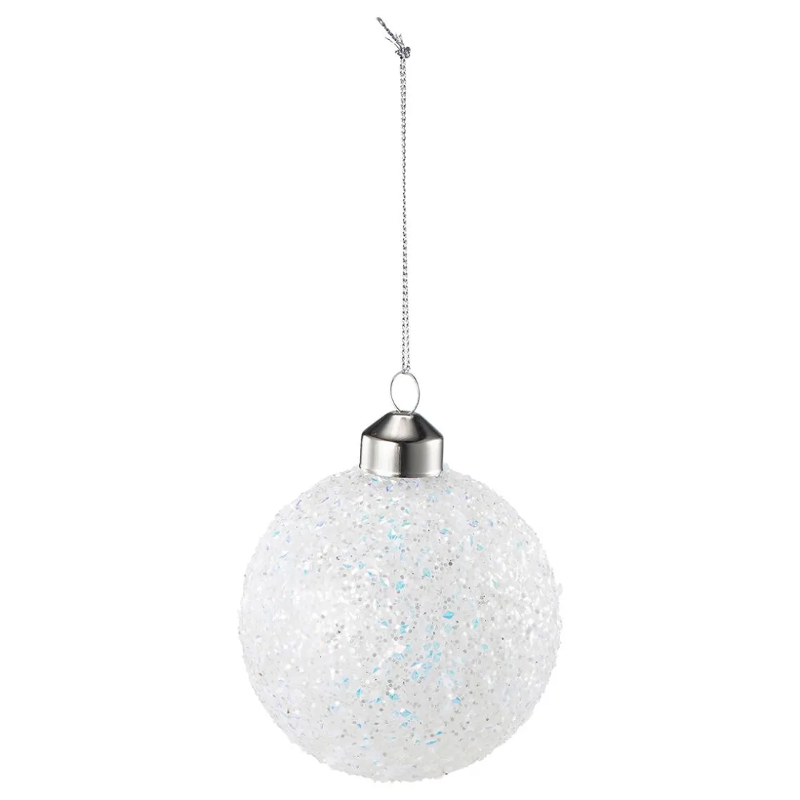 Denne julekula glitrer som nysnø med sin frostede overflate og små skinnende detaljer som fanger lyset vakkert. En fin kontrast til dypere fargetoner på treet. Kombiner den med våre andre for en gjennomført og stemningsfull juledekorasjon.