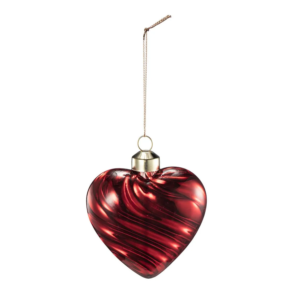 Et dyprødt hjerte med svingende mønster i glass som gir nydelig liv og dybde til juletreet. Heng det alene eller sammen med våre andre for et helhetlig uttrykk. Formen gjør det også fint å bruke i vinduet eller på dekorfat i julen.