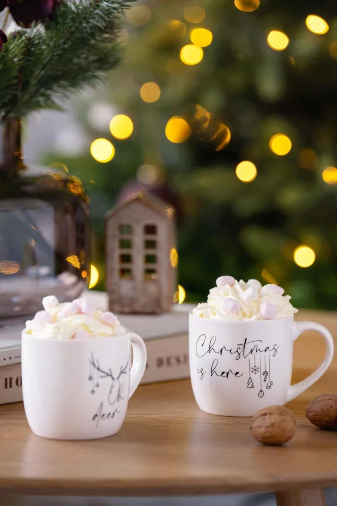 Nydelige hvite krus med julemotiv. Koppene er med på å skape julestemning i hjemmet og passer perfekt til morgenkaffen hele adventstiden og julen.