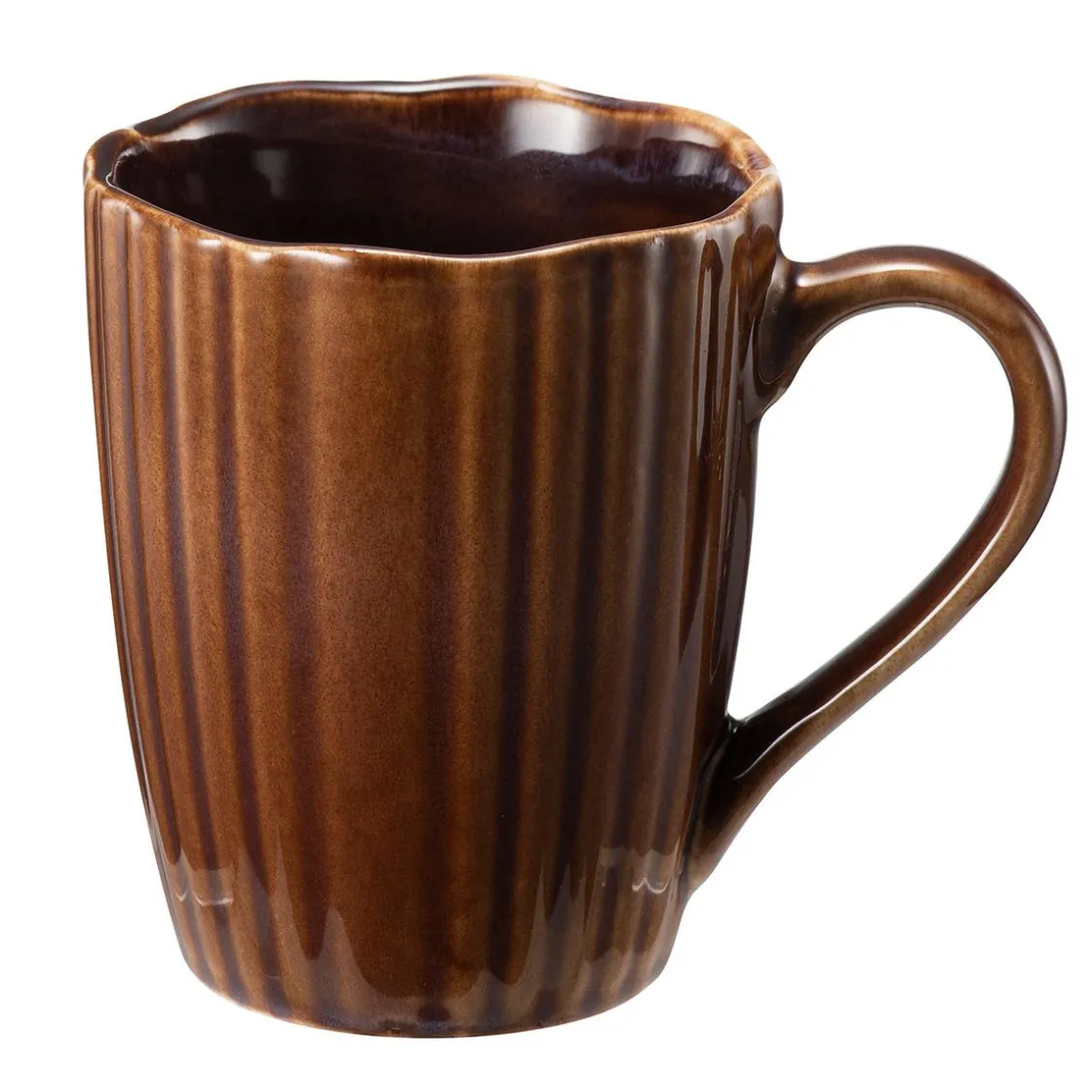 En kopp som gjør morgenkaffen litt varmere og tekosen litt lunere. Den dype brune fargen og den bølgete kanten gir et lite løft til både frokostbord og ettermiddagspause. Sett den sammen med resten av for en helthetlig borddekking.