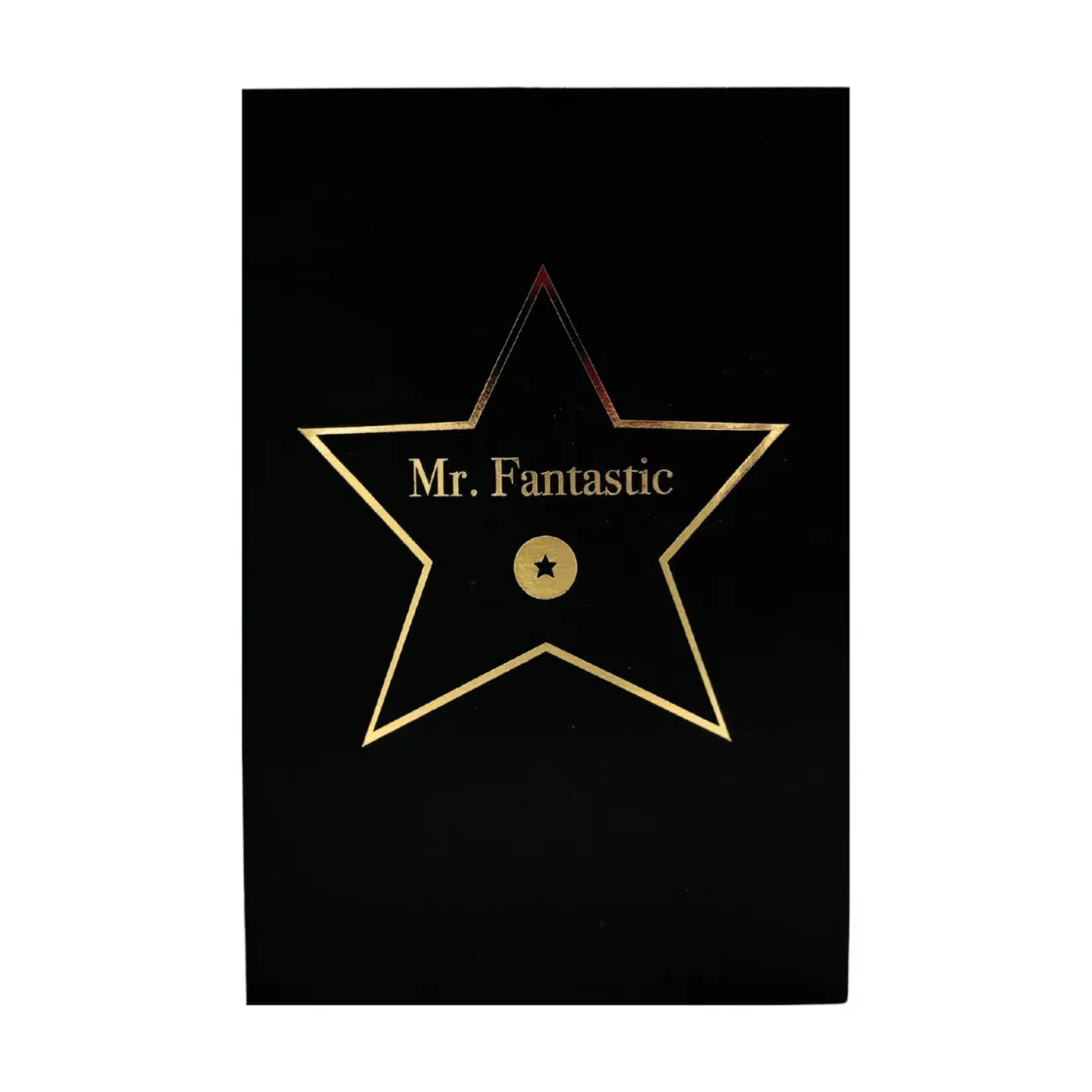 Dette kortet er et stilig valg for å feire «Mr. Fantastic» i ditt liv. Det svarte kortet er dekorert med en gullfarget stjerne, med teksten «Mr. Fantastic» i midten – en flott måte å vise påskjønnelse til en fantastisk person. Perfekt for bursdager, jubileer eller som en morsom oppmerksomhet for å feire hans unike kvaliteter. Kortet gir en moderne og minimalistisk hilsen, og passer til ulike anledninger.
