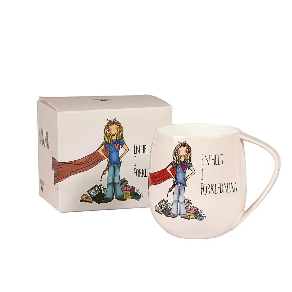 Dette er en veldig søt kopp med en hyllest til alle mammaer. «En helt i forkledning» synes i hvert fall vi er en god beskrivelse på mange mammaer der ute, og som fortjener en liten oppmerksomhet. En perfekt gave til morsdag eller bursdag. Eller hvorfor ikke bare som en hyggelig overraskelse?