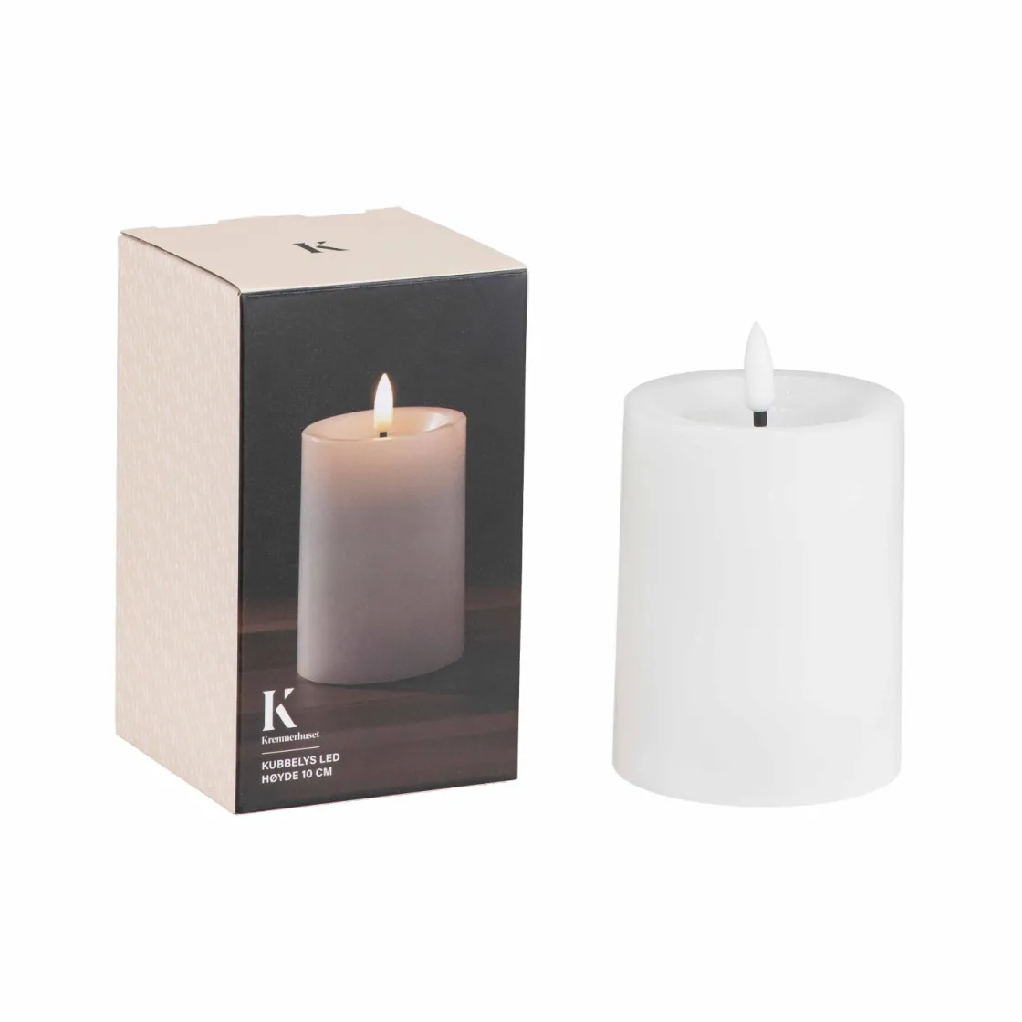 LED kubbelys med naturtro flammeeffekt. Passer med (selges separat), og leveres i gaveeske. Batterier følger ikke med.