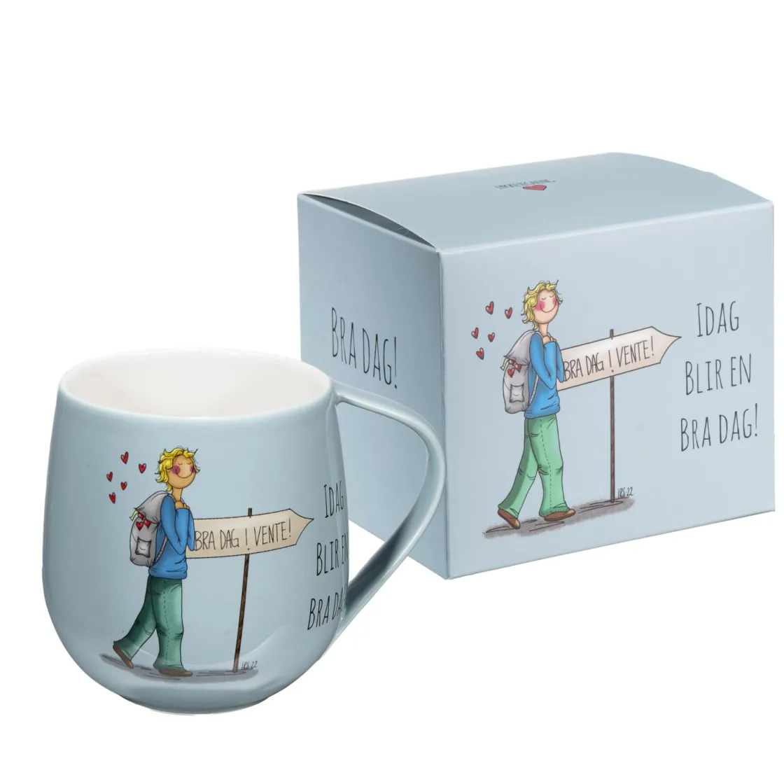 Start dagen med et smil og en positiv holdning med denne herlige Lykketegning-koppen! Den lyseblå koppen har det inspirerende budskapet «I dag blir en bra dag!» og en sjarmerende illustrasjon som minner deg om å møte dagen med optimisme. Koppen er laget av porselen og har en behagelig avrundet form som ligger godt i hånden. Den leveres også i en matchende gaveeske, noe som gjør den til en perfekt gave til noen som fortjener en god start på dagen!
