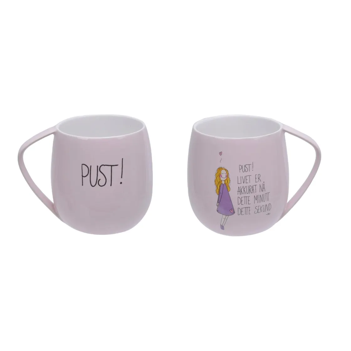 Lykketegning krus «Pust» i lys lilla gir deg en personlig kopp med en vakker tegning og tekst. Perfekt til deg selv eller som gave til noen du bryr deg om. Kruset har en behagelig størrelse som passer fint i hånden, og ser flott ut på hyllen når den ikke er i bruk. Leveres i en fin gaveeske.