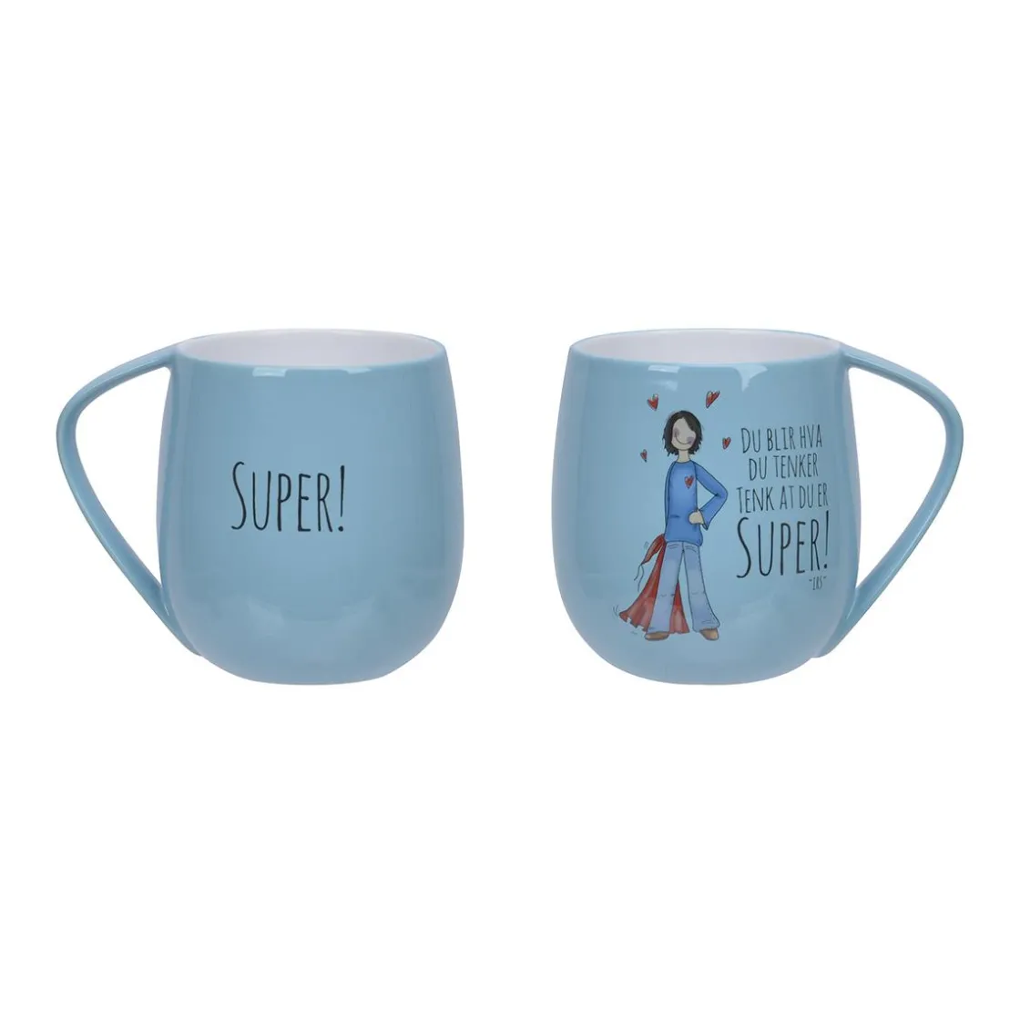 Tenk å få starte dagen med en dose selvtillit og positivitet med denne herlige Lykketegning-koppen! Den lyseblå koppen har teksten «Du blir hva du tenker – tenk at du er SUPER!», og en inspirerende illustrasjon som minner deg på hvor fantastisk du er. Kommer i en flott eske og er en perfekt gave til deg selv eller noen du vil løfte opp med et smil og gode vibber!
