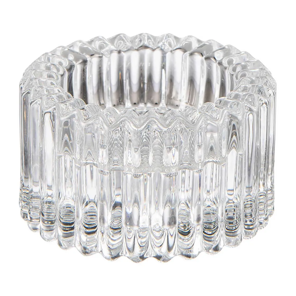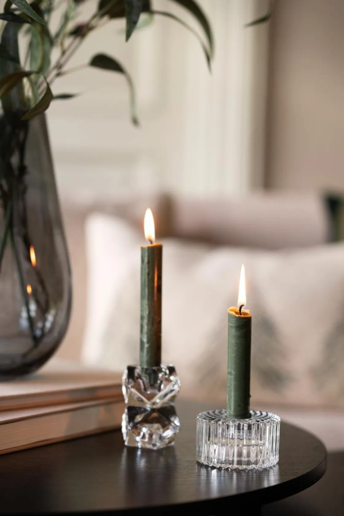 Supersøt kombi lysestake i klart glass som både kan brukes som telysholder og til kronelys hvis du snur den. Smart, ikke sant?