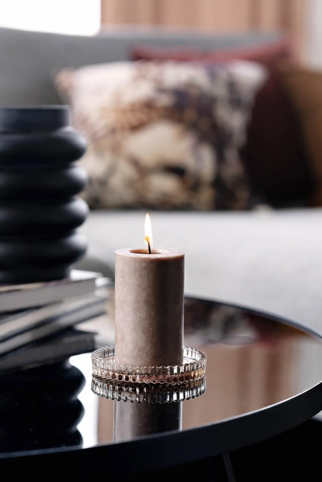 Lite lysfat som passer perfekt til et kubbelys. Lekre riller i bunn og kant. Kult å kombinere med de små kombistakene for telys eller kronelys og samle på et bord eller lysfat.