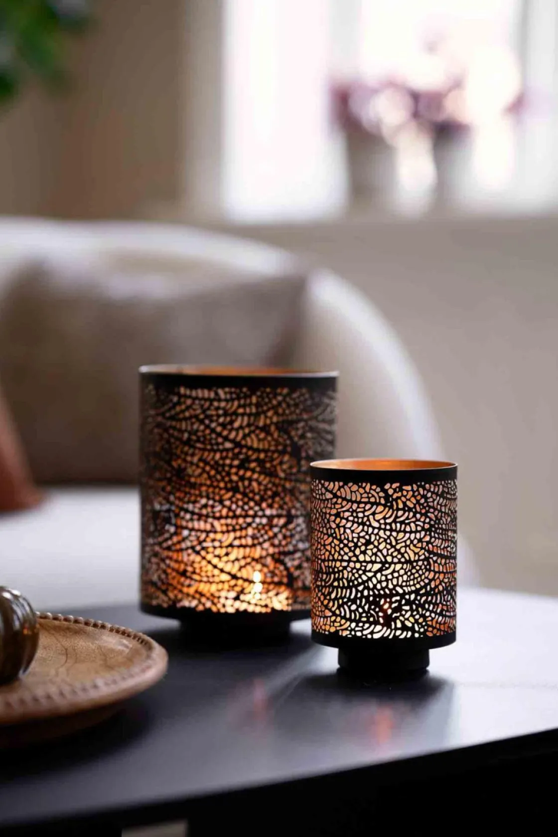 Forvandle ditt hjem lyslykt Nisha med en touch av luksus og varme. Vår lyslykt i gull og svart er designet for å tilføre en elegant og moderne estetikk til enhver innredning. Med sitt stilige utseende og kvalitetsmaterialer, gir denne lyslykten en behagelig og innbydende glød, perfekt for kvelder hvor du ønsker å skape en rolig og koselig stemning.