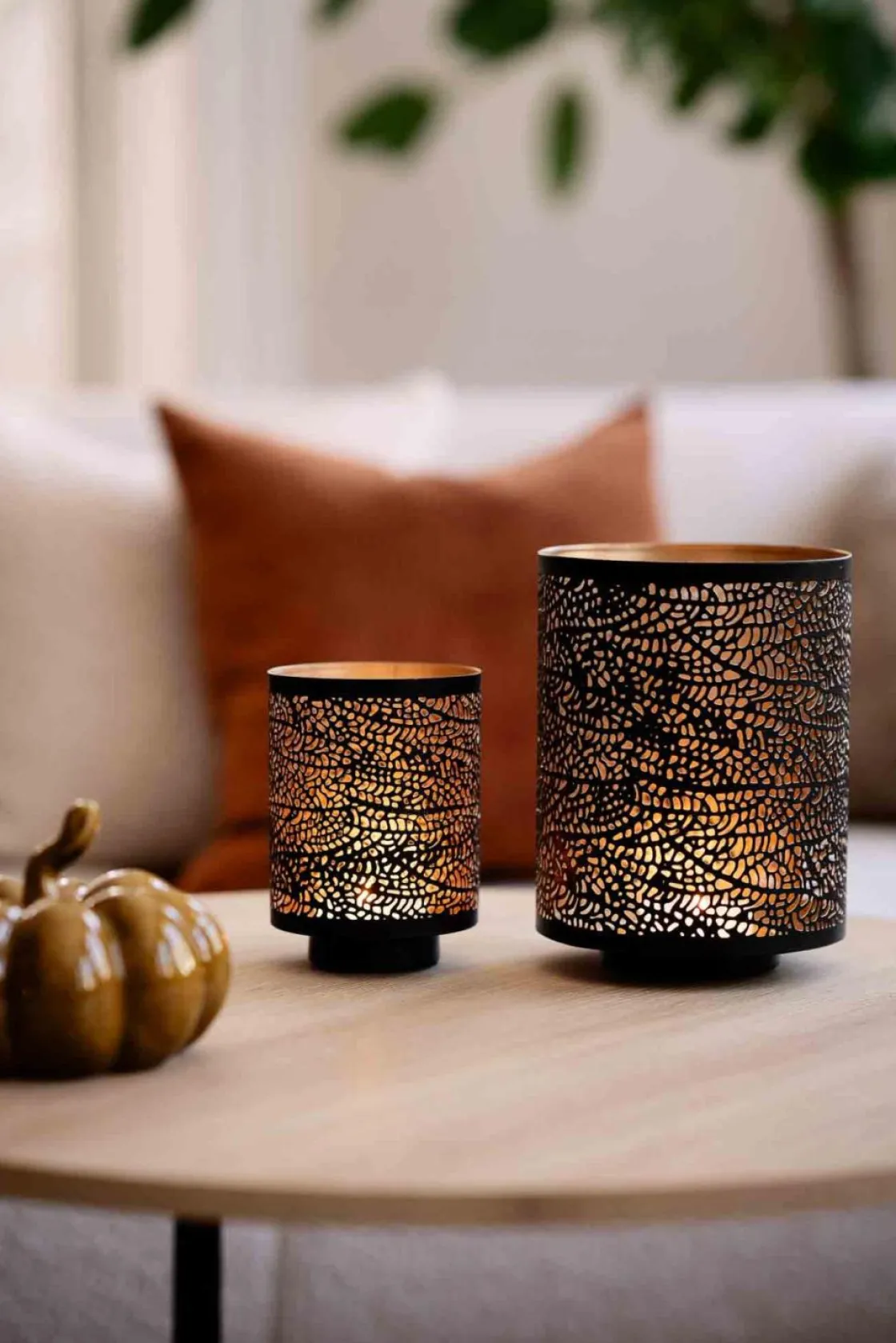 Gi ditt hjem nytt liv med lyslykt Nisha! Vår lyslykt i gull og svart er designet for å tilføre en elegant og moderne estetikk til enhver innredning. Med sitt stilige utseende og kvalitetsmaterialer, gir denne lyslykten en behagelig og innbydende glød, perfekt for kvelder hvor du ønsker å skape en rolig og koselig stemning.