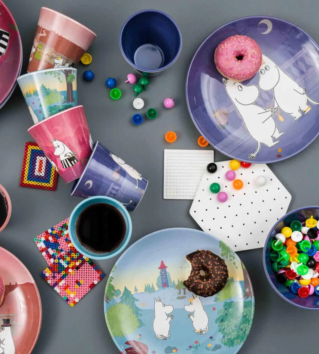Søt og fargerik asjett med Mummi-motiv. Dette er serien alle elsker og som gir glede for både store og små. Det er i serviset, så du kan mixe og matche slik du ønsker. Serviset er laget av melamin, et solid plastmateriale som er perfekt både for hjemmebruk og utendørs eventyr, takket være sin holdbarhet og allsidighet. Det tåler temperaturer fra -10°C til +70°C.