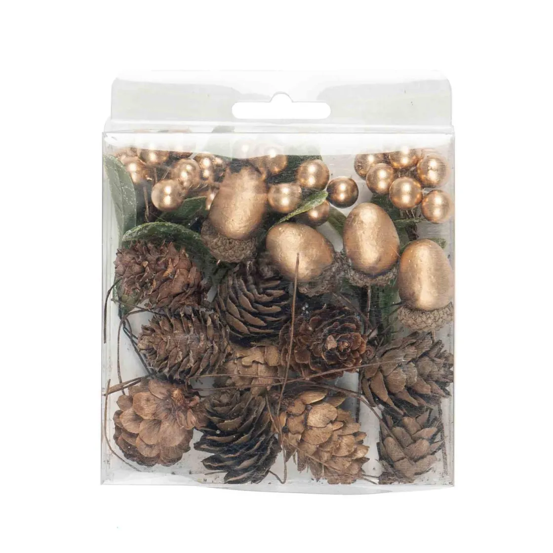 Pynt festbordet eller lysfatet denne sesongen med eikenøtter og bær i gull, kongler og grønne blader. Kjempe lekker dekor som gir et preg av natur i hjemmet.