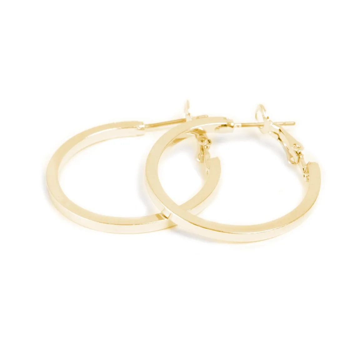 Enkle øreringer i en blank gullfarget firkantprofil med en god klypelås som er lett å ta av og på. Kommer i flere størrelser, disse er medium.