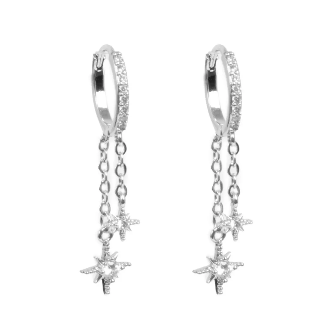 Utrolig lekre kreoler med hengende stjerneskudd i tynne lenker, sølvbelagt med zirconer.