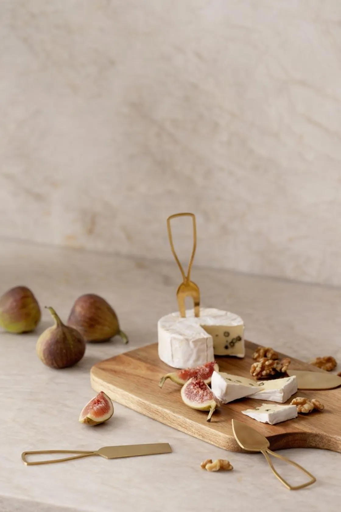Elegant osteknivsett i gullfinish med fire ulike kniver, perfekt til både harde og myke oster. Et stilig tillegg til ostebordet eller tapasserveringen. Kombiner gjerne med våre og for en komplett opplevelse.
