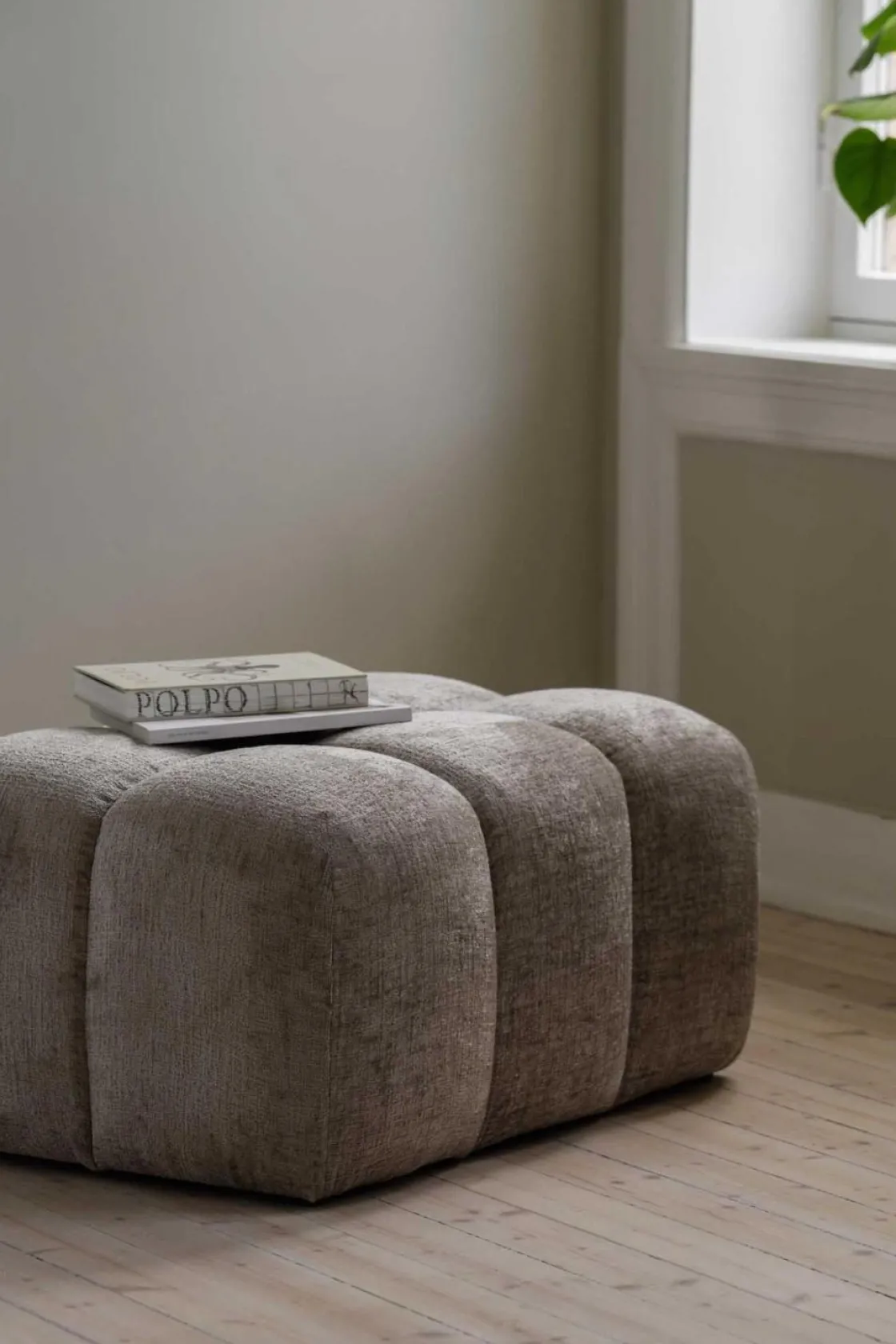 En elegant og trendy puff med mykt og behagelig chenille stoff i beige. Det stilige designet med avrundede former gjør puffen til et blikkfang i innredningen. Et perfekt sted å hvile trøtte føtter, som ekstra sitteplass for gjester eller bruk den som et avlastningsbord om man legger et brett eller på toppen.