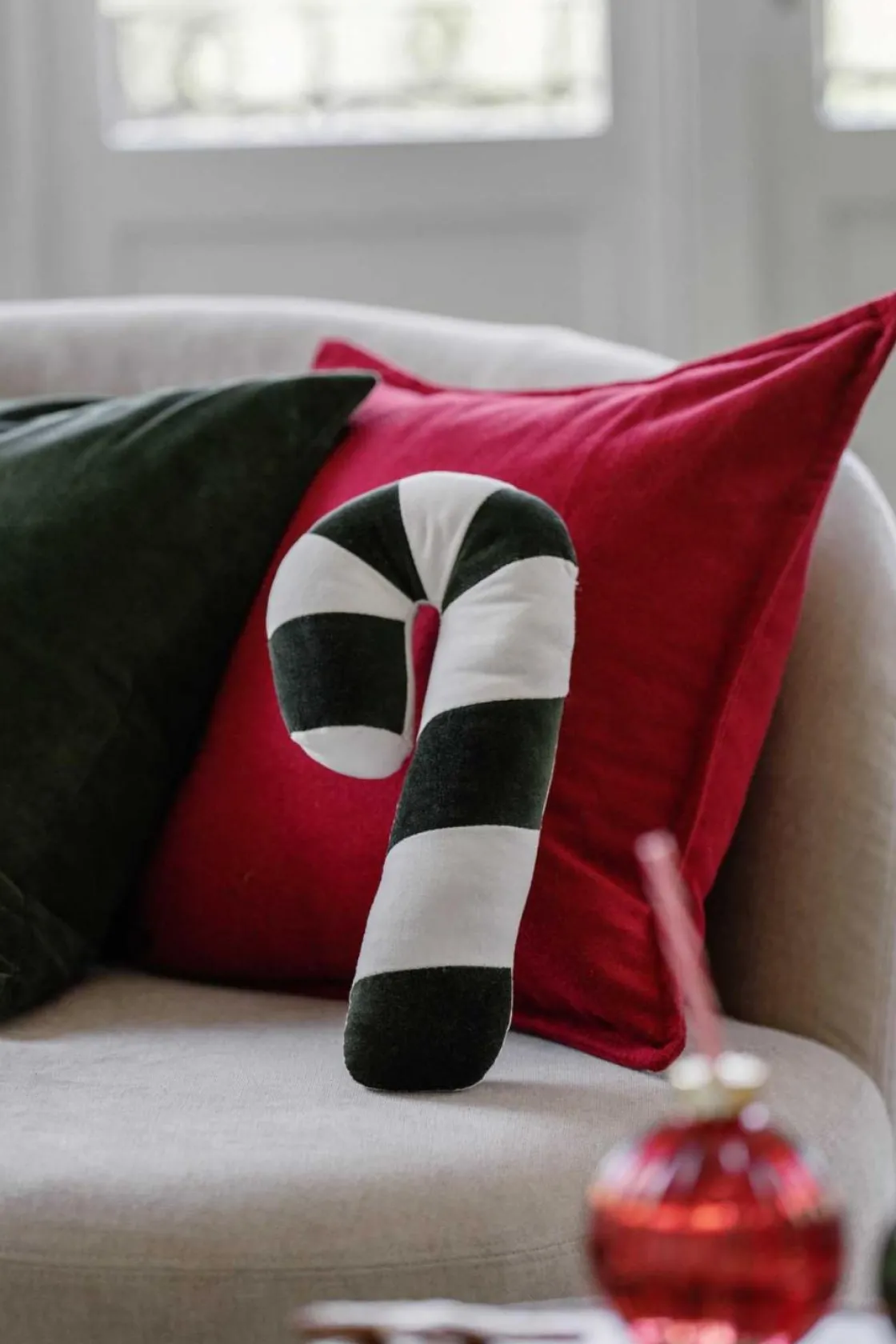 Pute formet som en godteristang i grønn og hvit. Denne puten gir et festlig innslag i sofaen eller hvor du måtte ønske å plassere den. Perfekt å kombinere med andre puter for å skape en unik og fargerik atmosfære. Se hele vårt utvalg av puter og finn dine favoritter for en komplett dekorasjon.