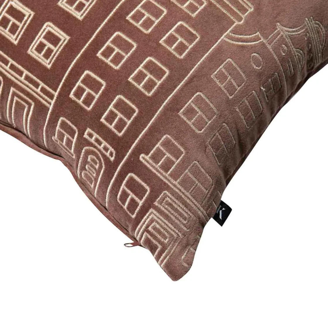 Et stilig putetrekk i støvrosa med motiv inspirert av husene i Amsterdam. Dette putetrekket kan fint kombineres med andre farger som grønn eller mer nøytrale farger som beige.