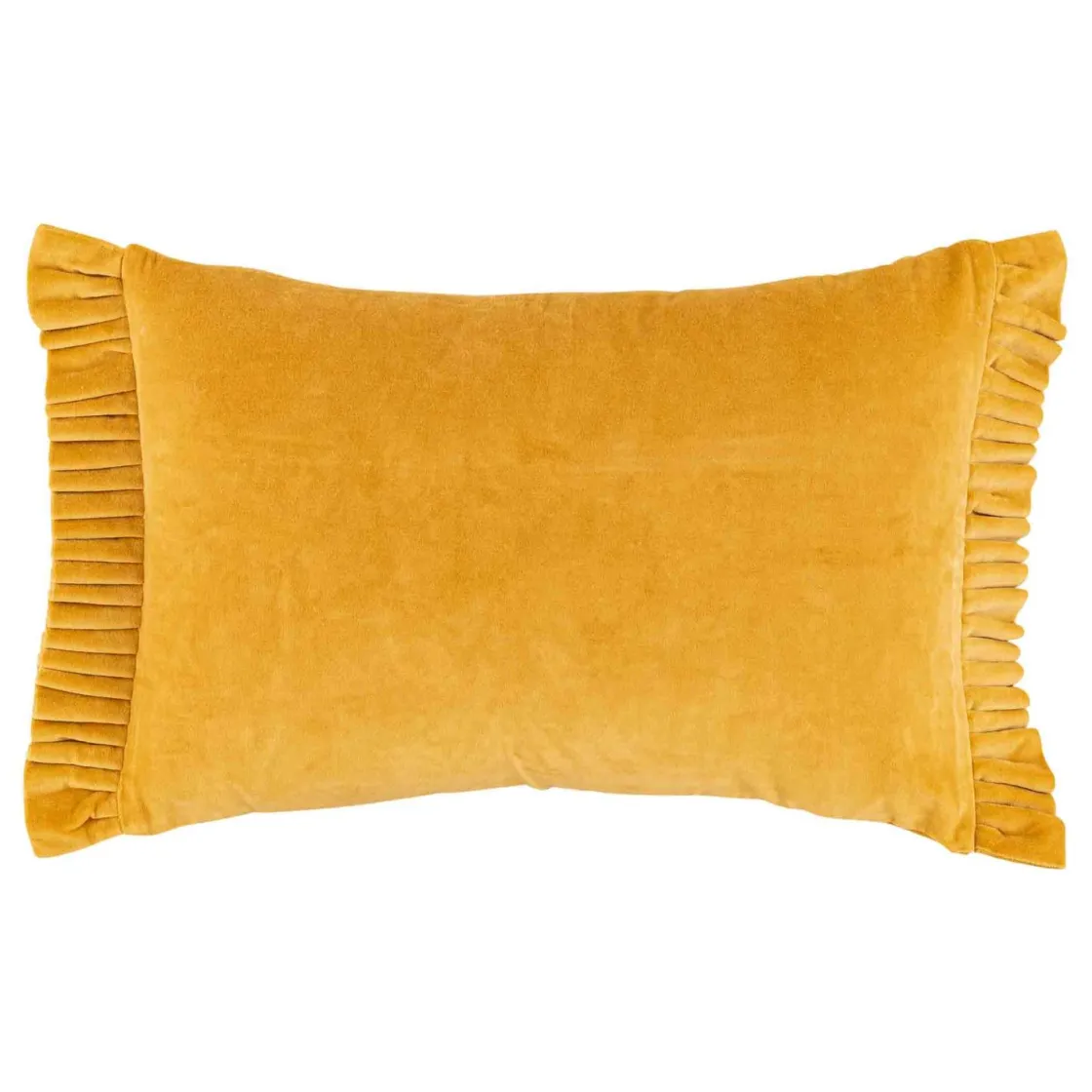 Sjekk ut denne lekre pynteputen i delikat gulfarge som virkelig popper i sofaen din. Nydelig rysjer på sidene. Putetrekket passer ypperlig med sesongens nydelige puter med forskjellige motiv og print. så her kan du boltre deg i farger og teksturer!