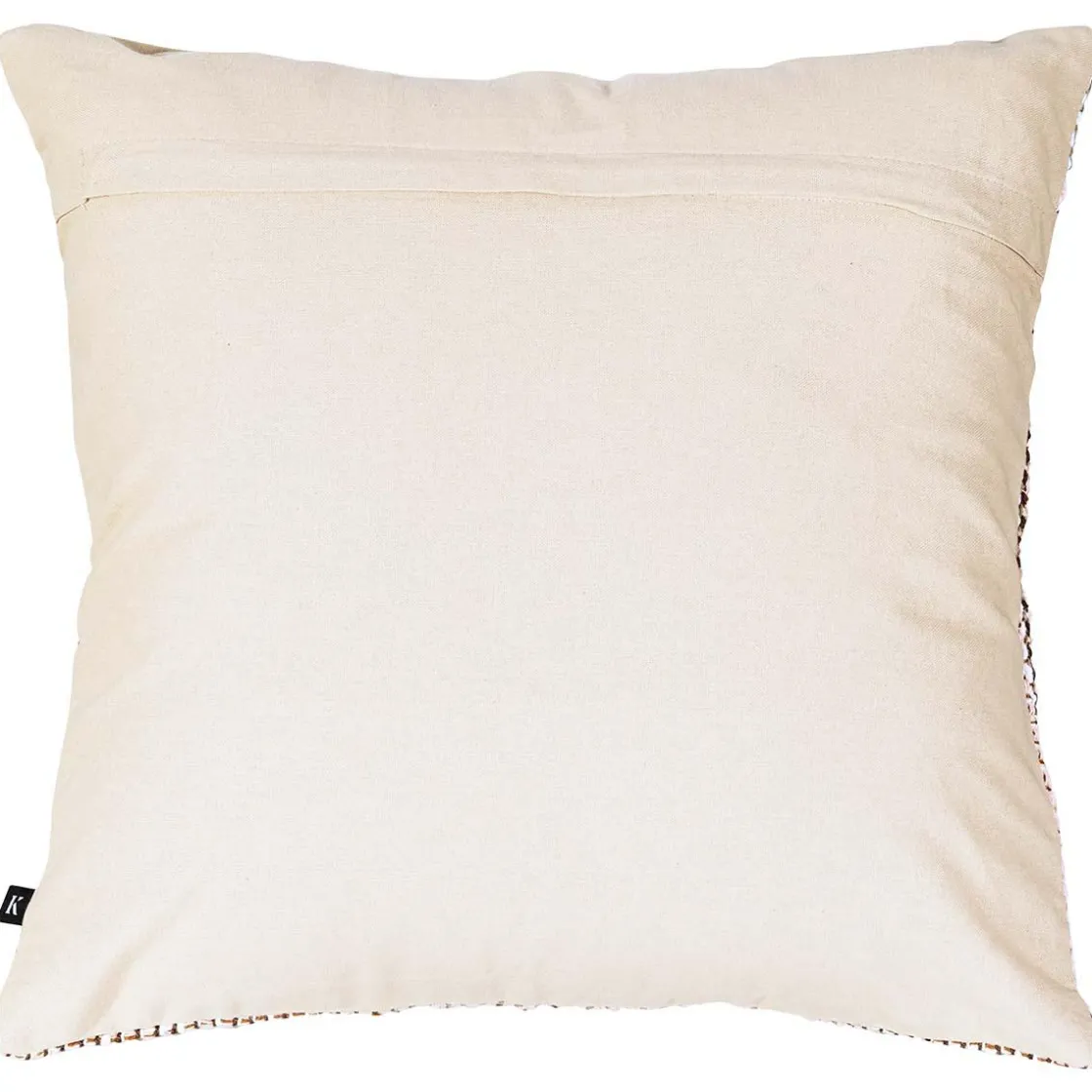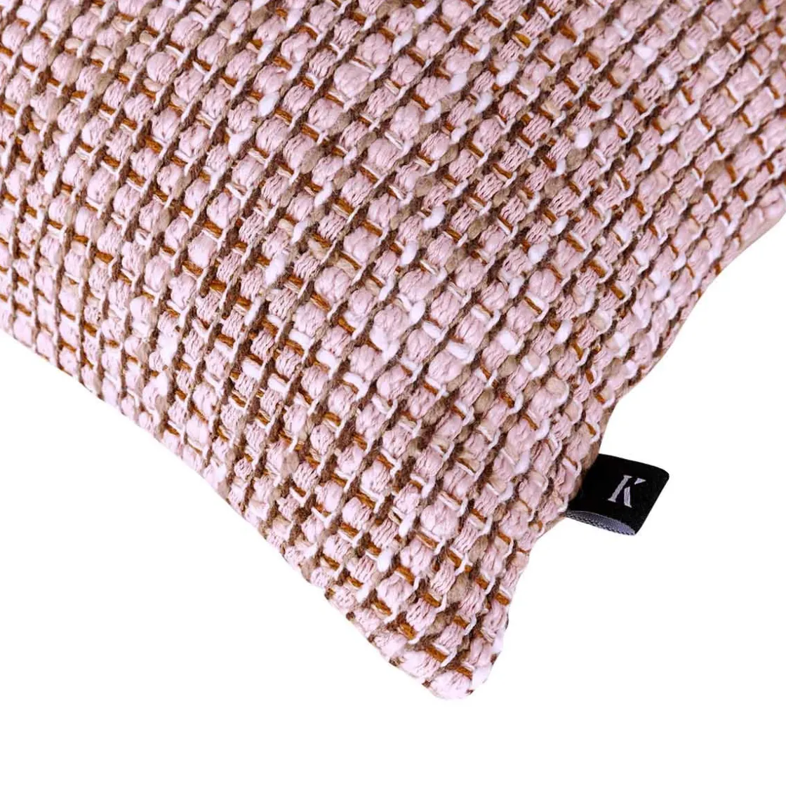 Vevd putetrekk i jordnære toner med innslag av støvet rosa som gir ro i sofakroken. Den grove strukturen gir liv til stua, og passer godt sammen med myke eller en lett linblanding.