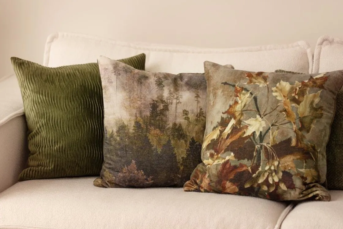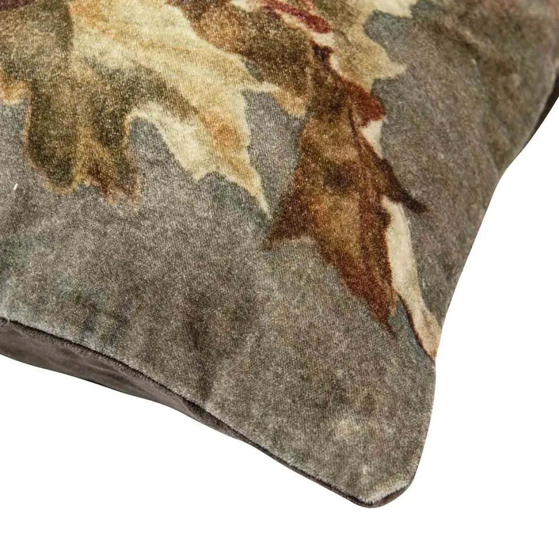 Skap en lun høststemning i hjemmet ditt med dette myke velurputetrekket, med et vakkert løvmotiv.