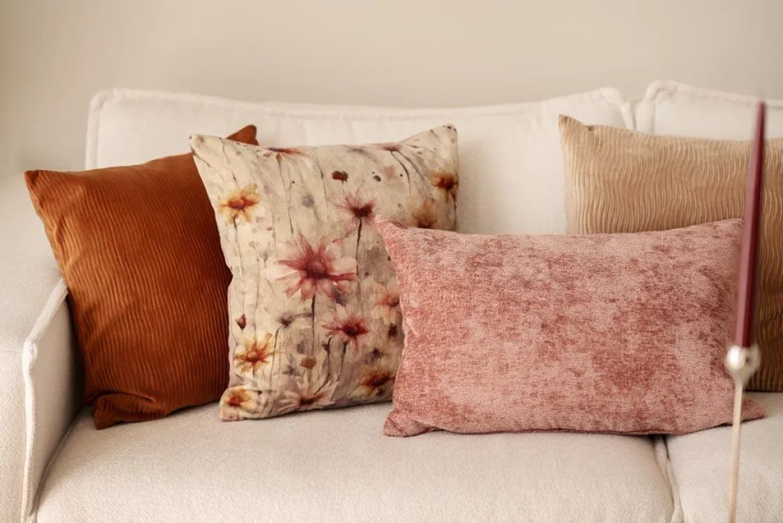 Med putetrekket Waves i rust kan du sette sammen de fineste putekombinasjonene. Dette velurputetrekket har små delikate riller som skaper en bølgende effekt, og fanger lyset på en fin måte. Kombiner det med puter med mønster for en livlig stil, eller med andre ensfargede putetrekk i ulike tekstiler for en harmonisk og sammenhengende look. Det gir deg muligheten til å leke med ulike teksturer og farger i innredningen.