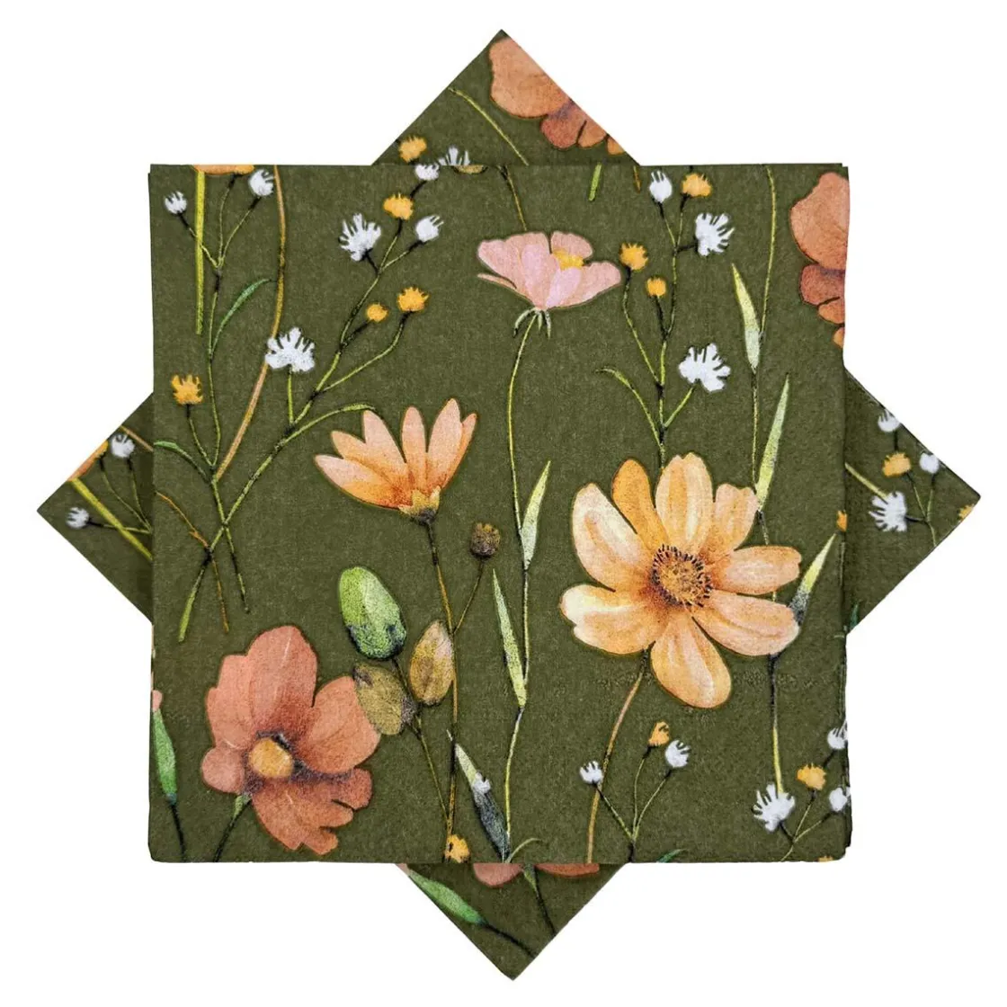Vakker grønn serviett med blomstermønster som gir borddekkingen et friskt og naturlig preg, perfekt til både hverdag og fest.