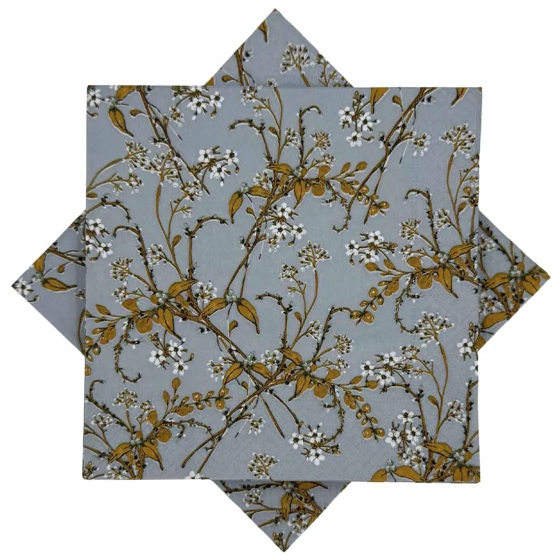 Dekorativ blå serviett med flott blomsterdesign som setter et friskt og elegant preg på borddekkingen. Sjekk ut alle våre servietter