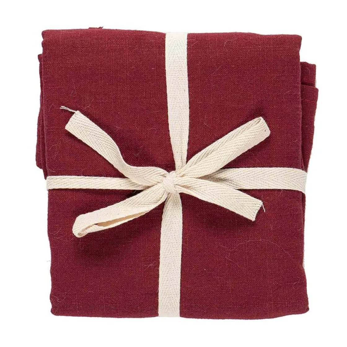 Gi dine bordoppdekninger et elegant preg med våre lin-servietter i rød. Den dype røde fargen legger til en varm og festlig atmosfære til enhver anledning, enten det er til hverdags eller til spesielle sammenkomster i julen.