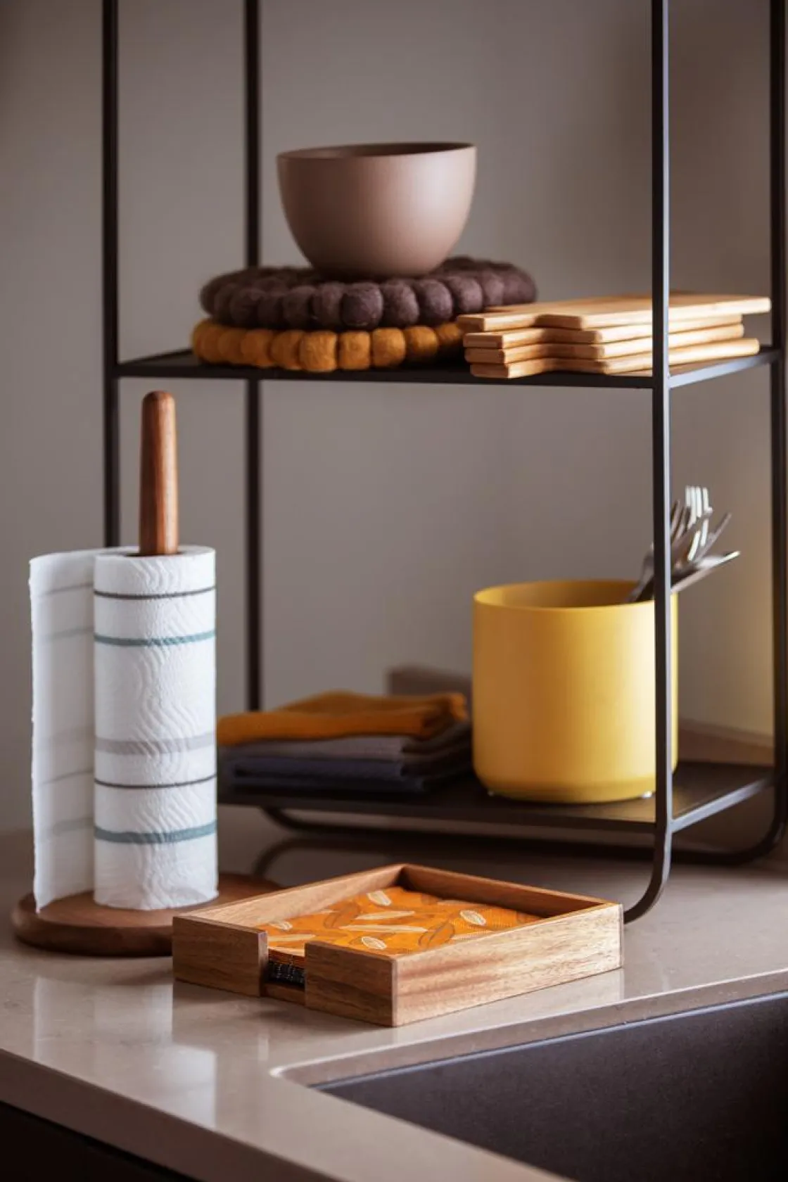 Liker du å sette frem serviettene lekkert frem på bordet, er denne i akasietre nydelig. Passer til kvadratiske standard servietter.