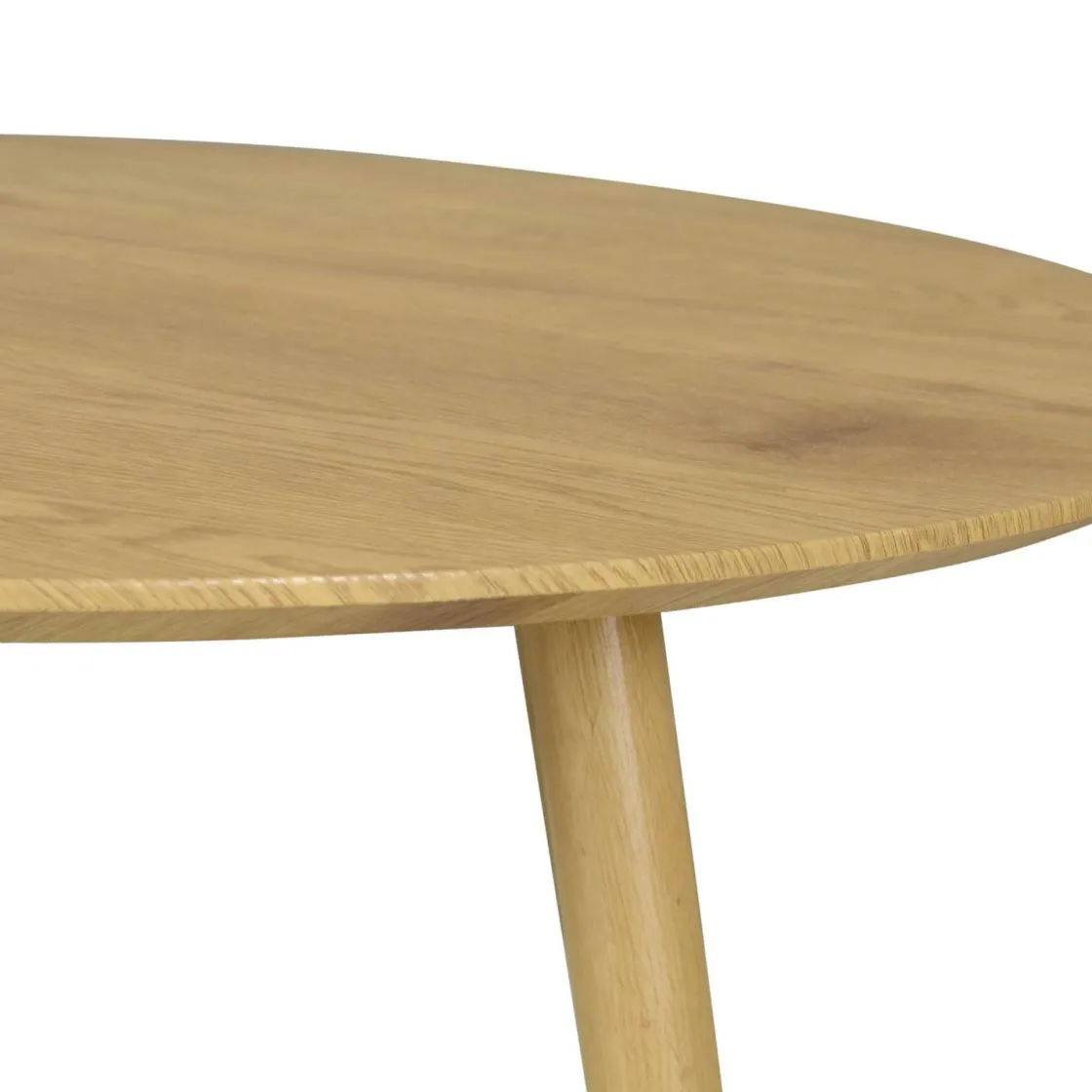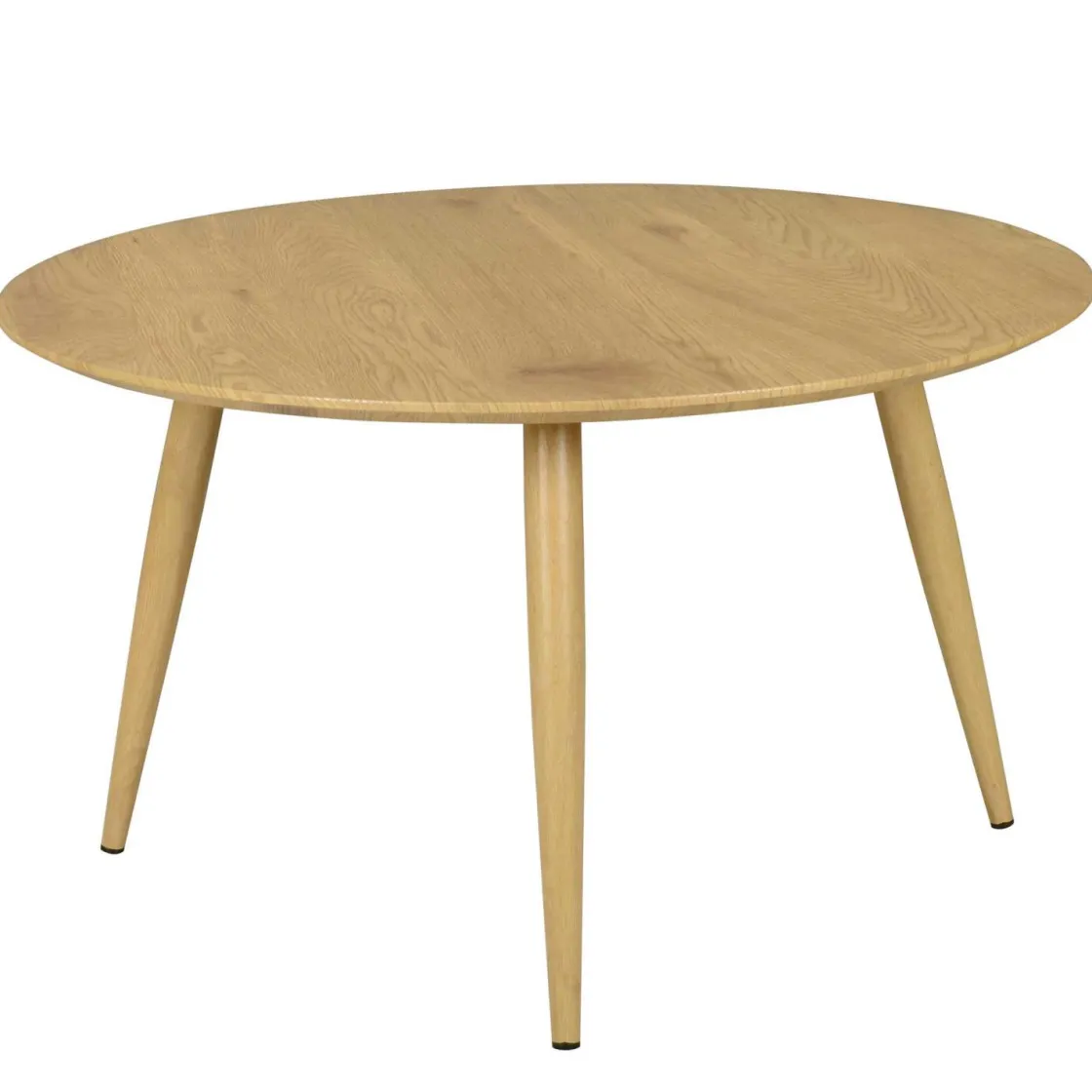 Stilig rundt bord i lys eik som passer perfekt i stuen, finnes også i en mindre størrelse. Kombiner de to størrelsene for et herlig uttrykk med stor bruksflate, som kan skyves under for å ta mindre plass.